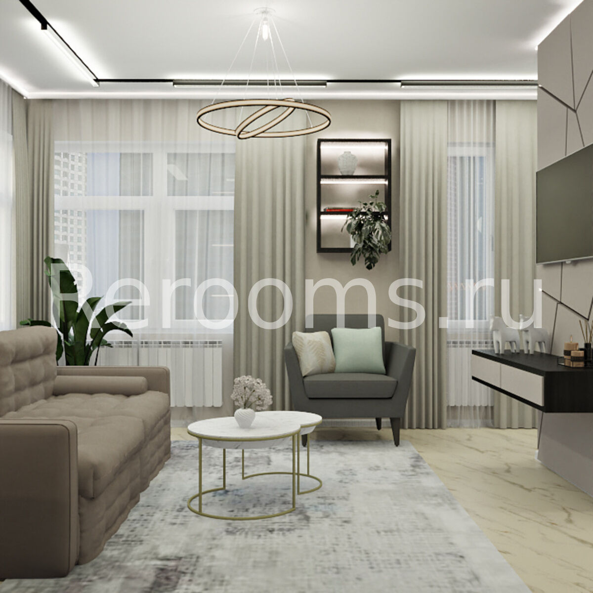 Фото № 2: Дизайн-проект трехкомнатной квартиры 78.14  м² Стиль Модернизм для ЖК Сердце Сибири