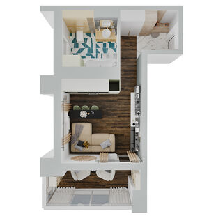 Фото № 2: Дизайн-проект квартиры-студии 33.4  м² Современный стиль для ЖК Тесла Парк