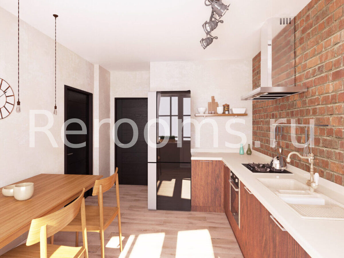 Фото № 4: Дизайн-проект однокомнатной квартиры 46.9  м² стиль Лофт для ЖК Крылья
