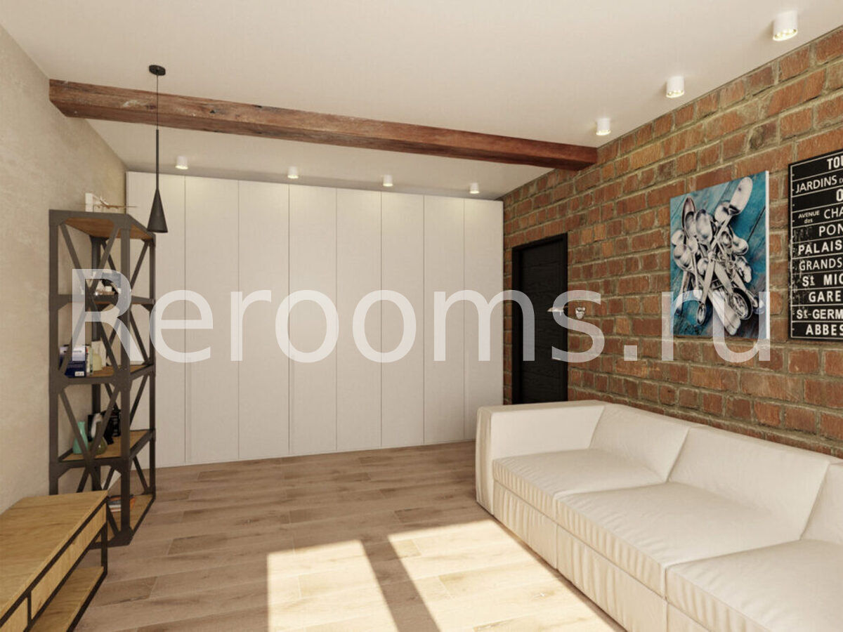 Фото № 6: Дизайн-проект однокомнатной квартиры 46.9  м² стиль Лофт для ЖК Крылья