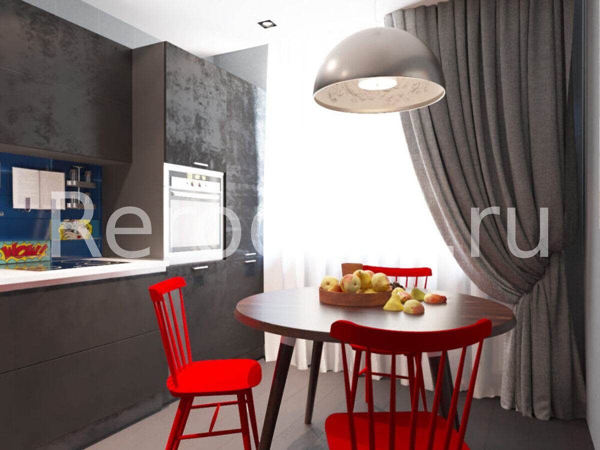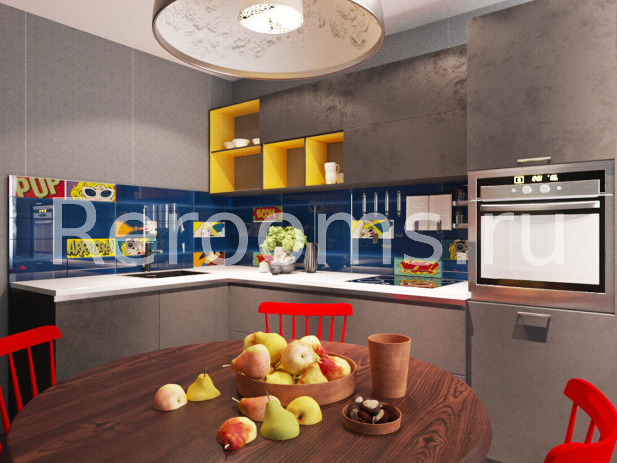 Яркая квартира для молодых и творческих людей в стиле поп-арт. Просторная кухня, большая гостиная, с большими стеллажами для книг и прочих мелочей, спальня с большой системой хранения, в дальнейшем у окна рядом с кроватью, можно расположить детскую кроватку.