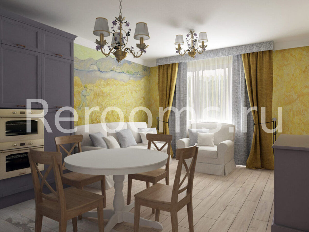 Фото № 2: Дизайн-проект кухни-гостиной 25.8  м² стиль Прованс для ЖК Серебряные звоны-2