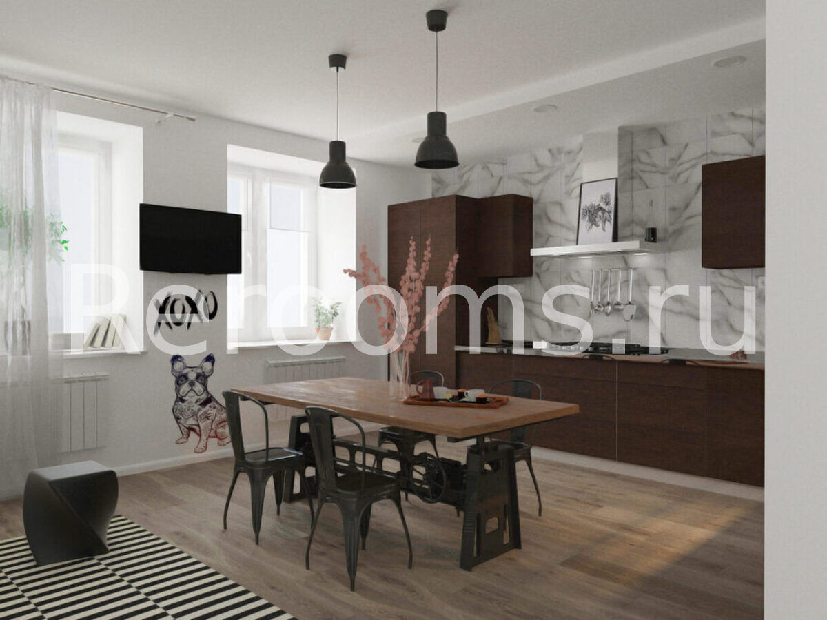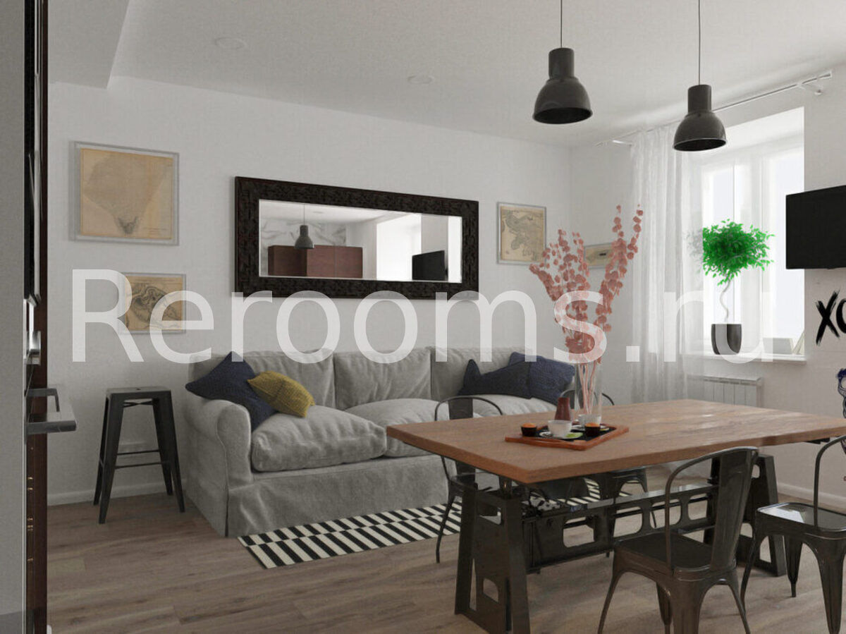 Фото № 3: Дизайн-проект кухни-гостиной 23.7  м² стиль Лофт для ЖК Рассказово