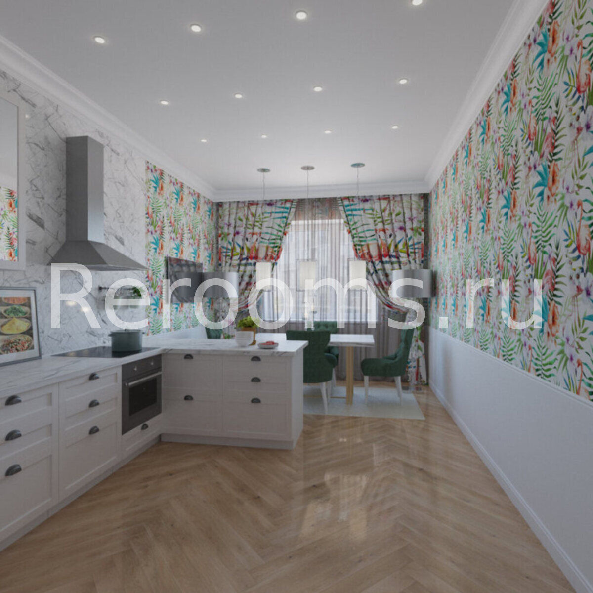 Фото № 2: Дизайн-проект кухни-гостиной 14.1  м² стиль Современная классика для ЖК Екатерининский