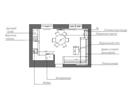 Стиль модернизм создает необыкновенную атмосферу в помещении. Интерьер, оформленный в этом стиле, отличается особой утонченностью. Интересные дизайнерские находки, гармоничная цветовая гамма, удобная эргономичная мебель - все это работает на поддержание выбранной стилистической концепции в интерьере этой кухни-гостиной.
