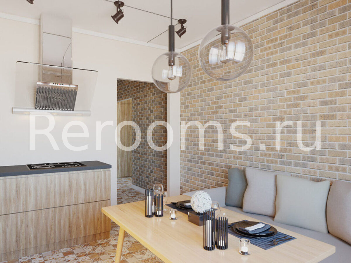В отделке отдано предпочтение натуральным цветам и кирпичу. Штукатурка, обои, имитирующие штукатурку, кирпичная кладка, терракотовая плитка с принтом.