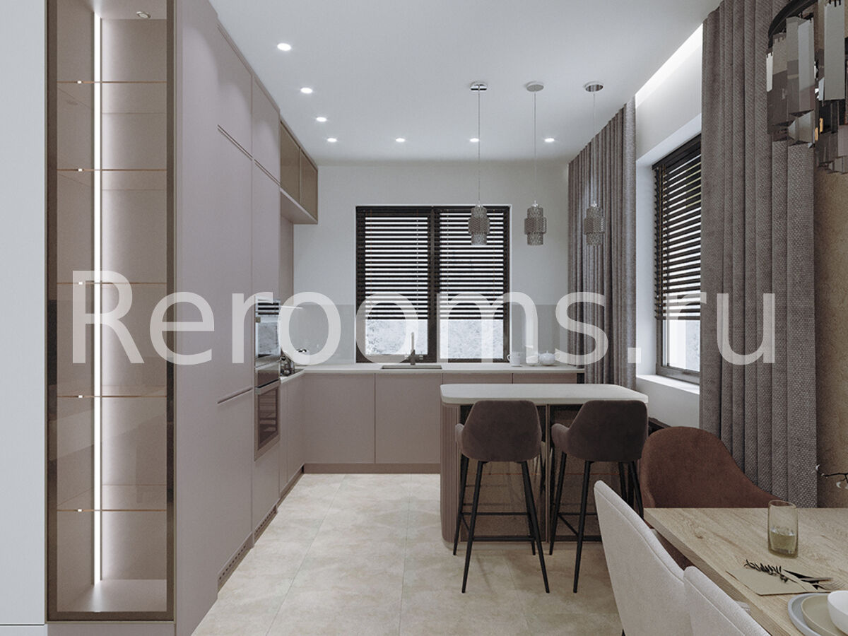 Дизайн частного дома выдержан в современном стиле. Цветовая гамма с использованием серых, бежевых, коричневых и акцентных золотых тонов делает интерьер ультрамодным и красивым. Интересная архитектура пространства, комбинация различных материалов и оригинальный световой сценарий - все это работает на поддержание концепции современного дизайна.