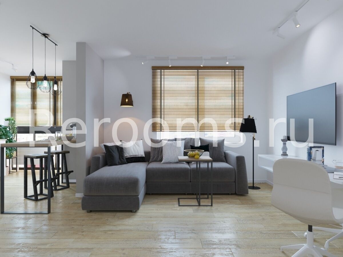 Интерьер этой однокомнатной квартиры выполнен в стиле лофт. Деревянные поверхности, кирпич, современные индустриальные светильники, а также металлические элементы декора придают помещению брутальный дух фабричного пространства. В интерьере преобладают характерные для лофтовой стилистики цвета, такие как белый, серый, древесный. Пространство квартиры функционально и четко соответствует выбранной концепции. Особый штрих - панорамные окна, они пропускают в помещение максимум света и придают ему ультрамодный вид.