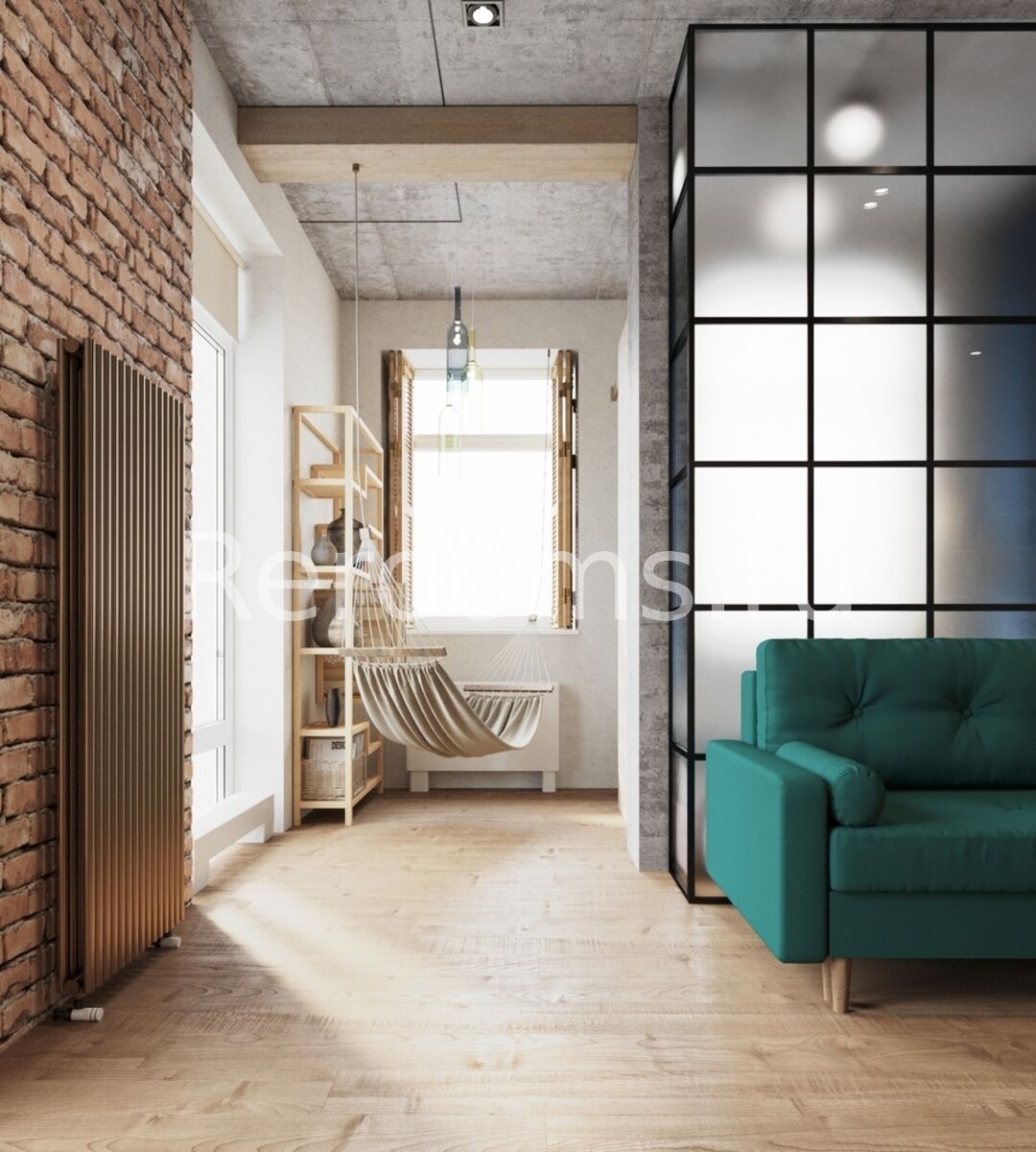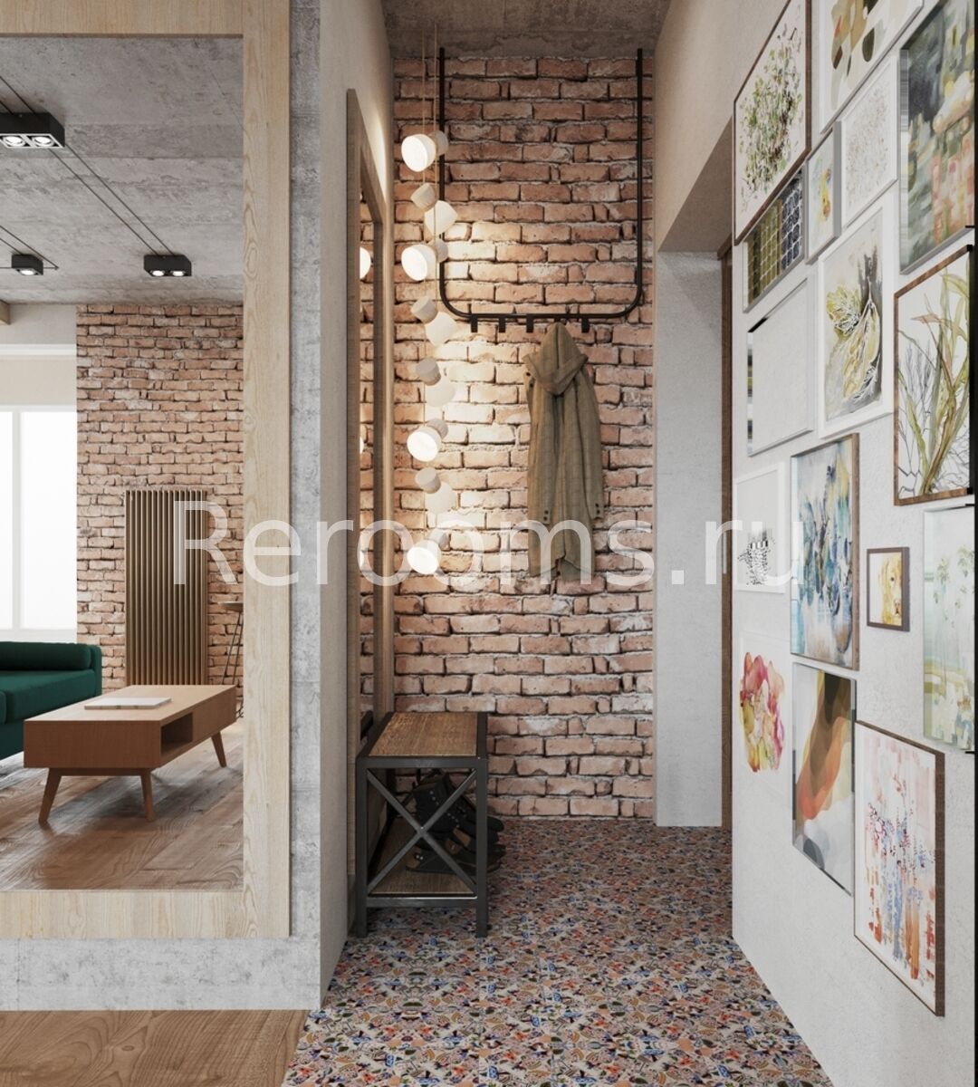 Дизайн-проект однокомнатной квартиры выполнен в стиле лофт. Интерьер выдержан с соблюдением всех правил лофтовой стилистики. Кирпичная кладка в зоне прихожей и грубый бетон, использованный в остальных помещениях, придают пространству ультрасовременный вид. Разноплановая отделка и декор позволяют визуально поделить квартиру на несколько функциональных зон.