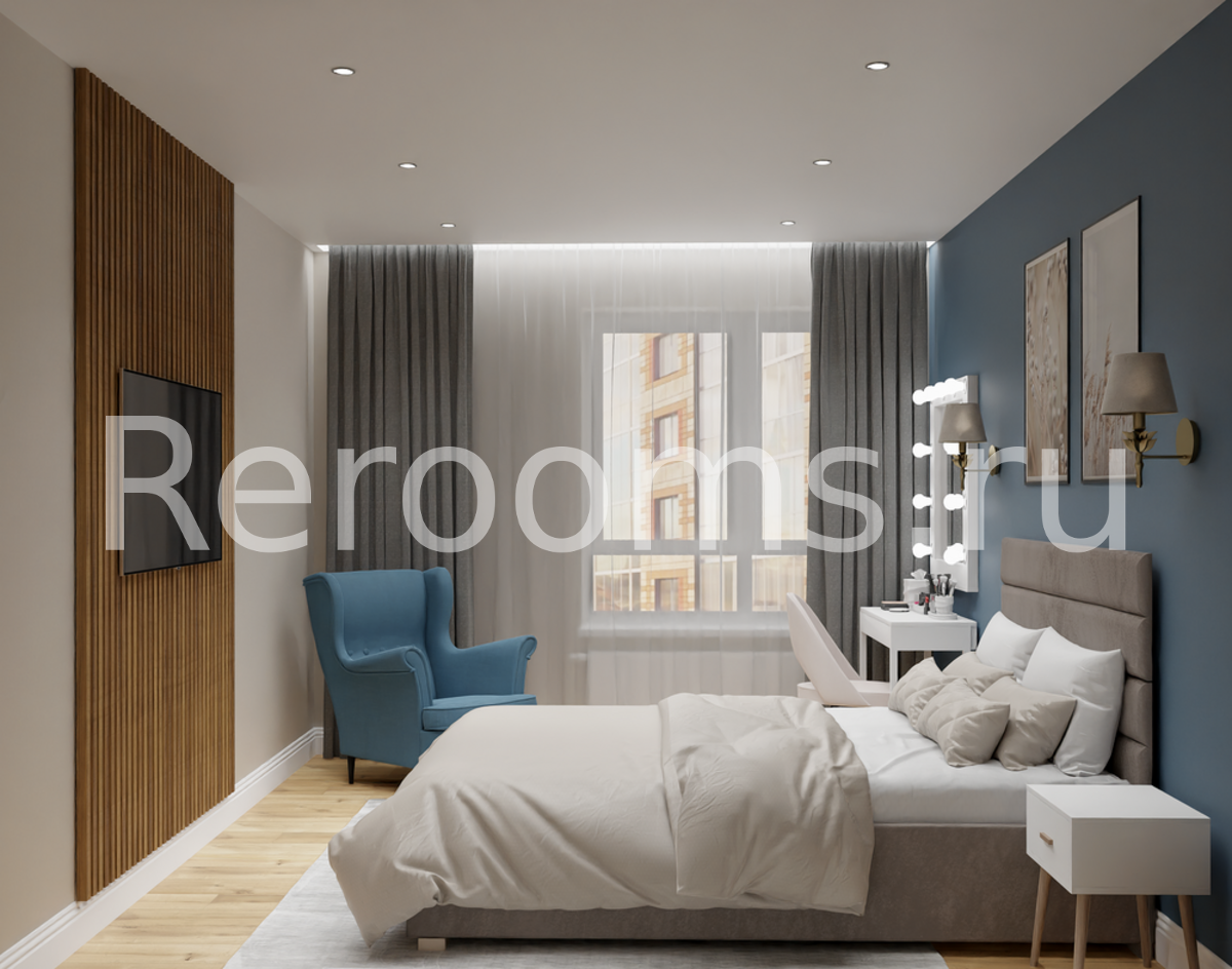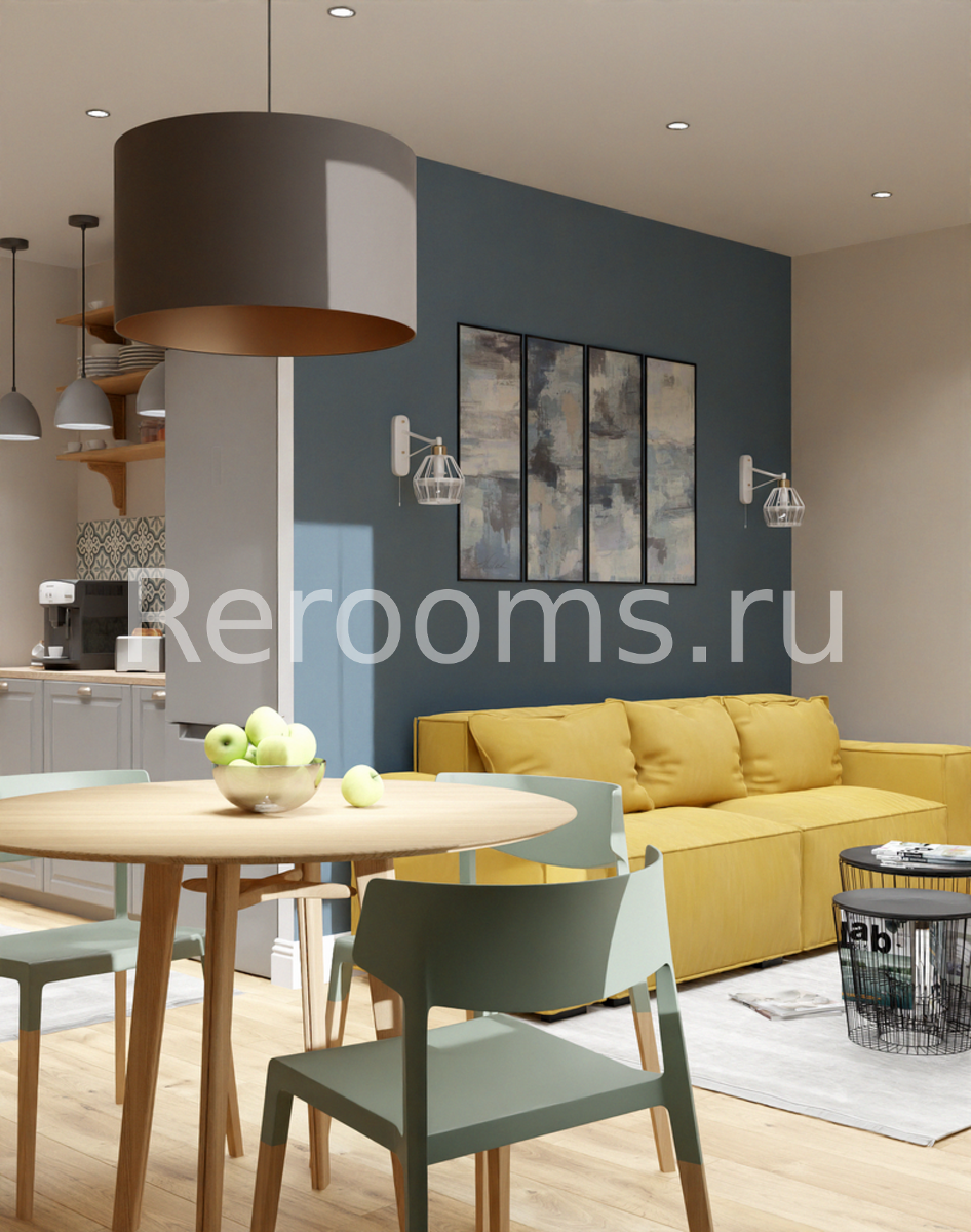 Дизайн-проект этой двухкомнатной квартиры выполнен в скандинавском стиле. Несмотря на простоту и лаконичность сканди-стилистики, интерьер отличается необычайной изысканностью. В качестве основных цветов выбраны классические для скандинавского дизайна белый, синий и более яркие насыщенные цвета. Наличие натуральных материалов в отделке и оформлении создает в помещении особую атмосферу тепла и уюта.