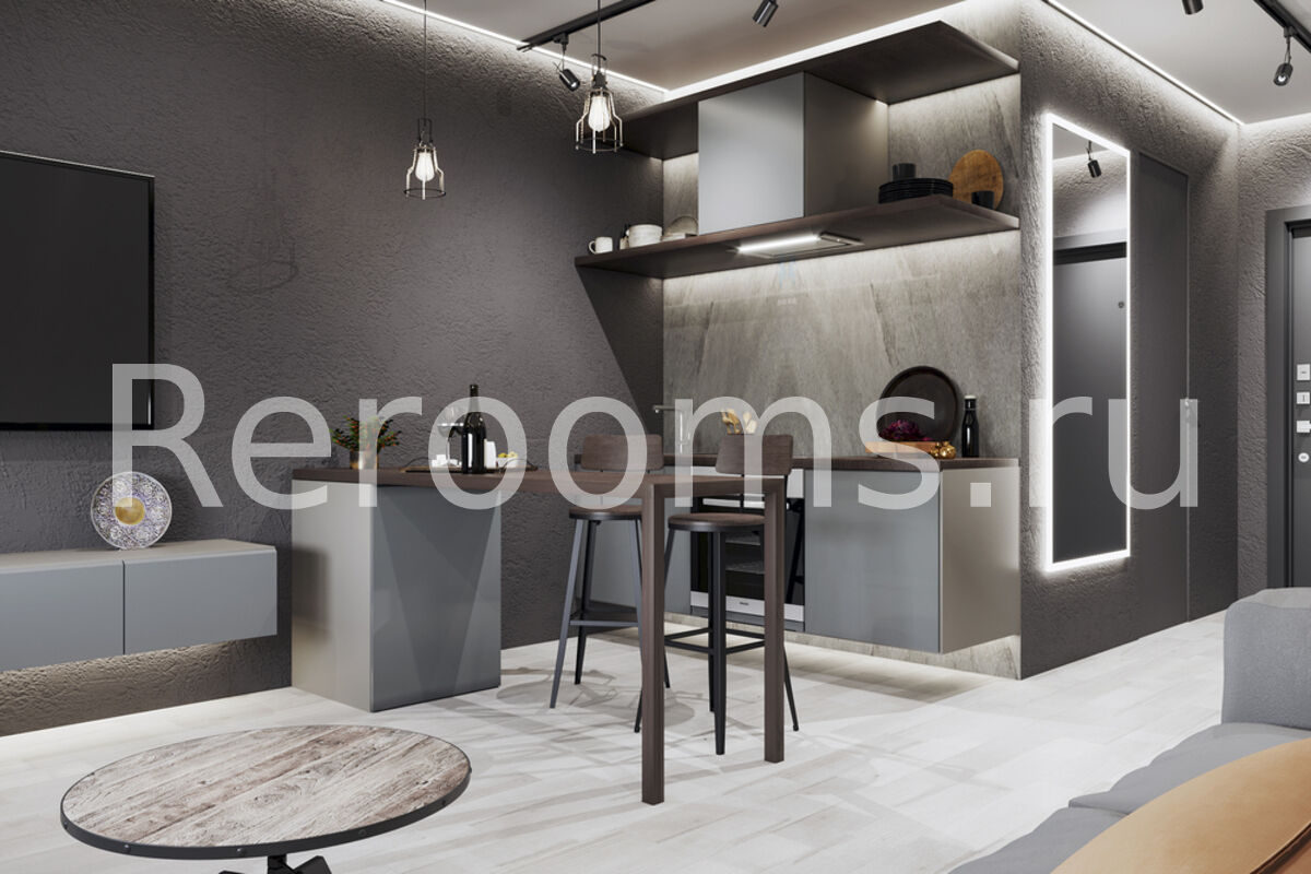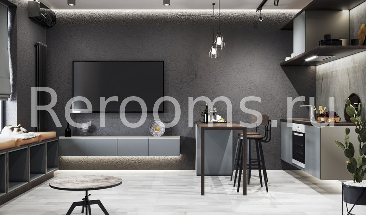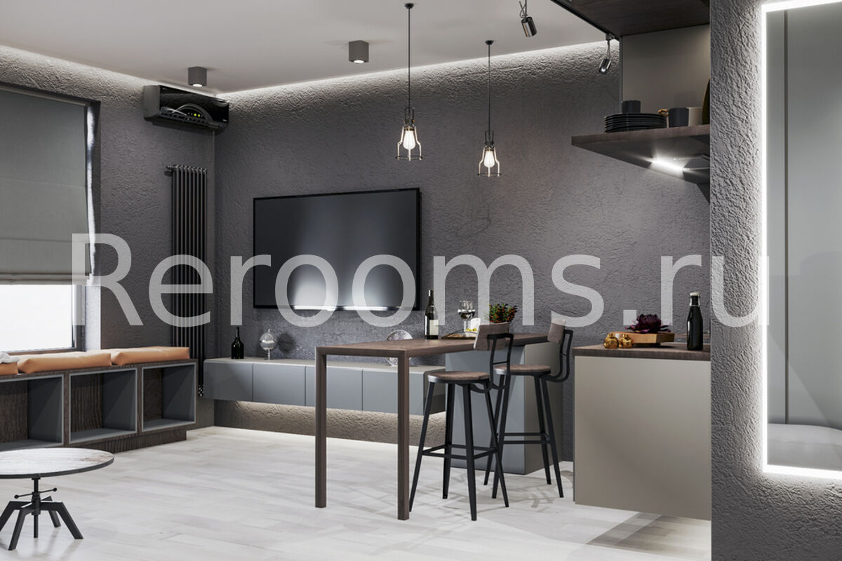 Лофт – современный промышленно-урбанистический стиль интерьера, характеризующийся наличием индустриальных элементов в оформлении пространства. В последнее время эта стилистика является необычайно популярной. И это вполне объяснимо, так как именно лофт является синонимом универсальности, функциональности и комфорта. Да и позволить себе такой интерьер могут не только владельцы большого жилого пространства, но и обладатели совсем небольших квартир. Дизайн-проект этой квартиры – яркий пример индустриального стиля, воплощенного в небольшом пространстве. Фактура и отделочные материалы идеально соответствуют духу лофта, а все мелкие детали гармонично вписаны в общую стилистику.