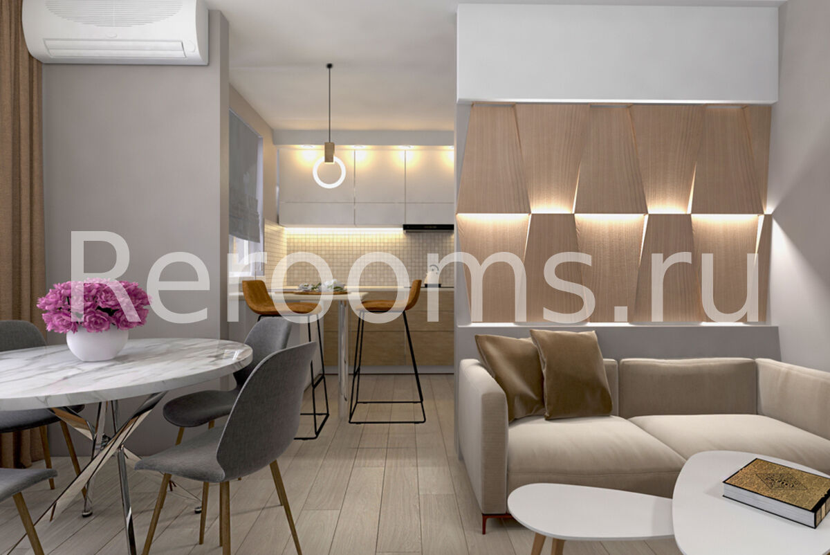В интерьере этой двухкомнатной квартиры дизайнеры воплотили модный, современный и передовой стиль модернизм. Четкая геометрия пространства, интересные архитектурные формы, обилие разнообразных текстур, современные элементы декора, как основные составляющие модернизма, в данном интерьере смотрятся необычайно гармонично и целостно. Разноплановое освещение придает пространству индивидуальный характер и особый уют. А гармоничное сочетание цветов делает квартиру стильной и уникальной.