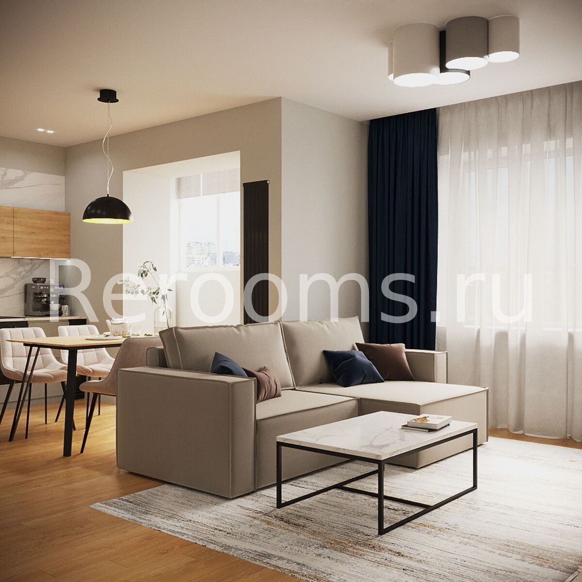 Дизайн-проект двухкомнатной квартиры 57.97 м² стиль Модернизм для ЖК "Новое Пушкино"
