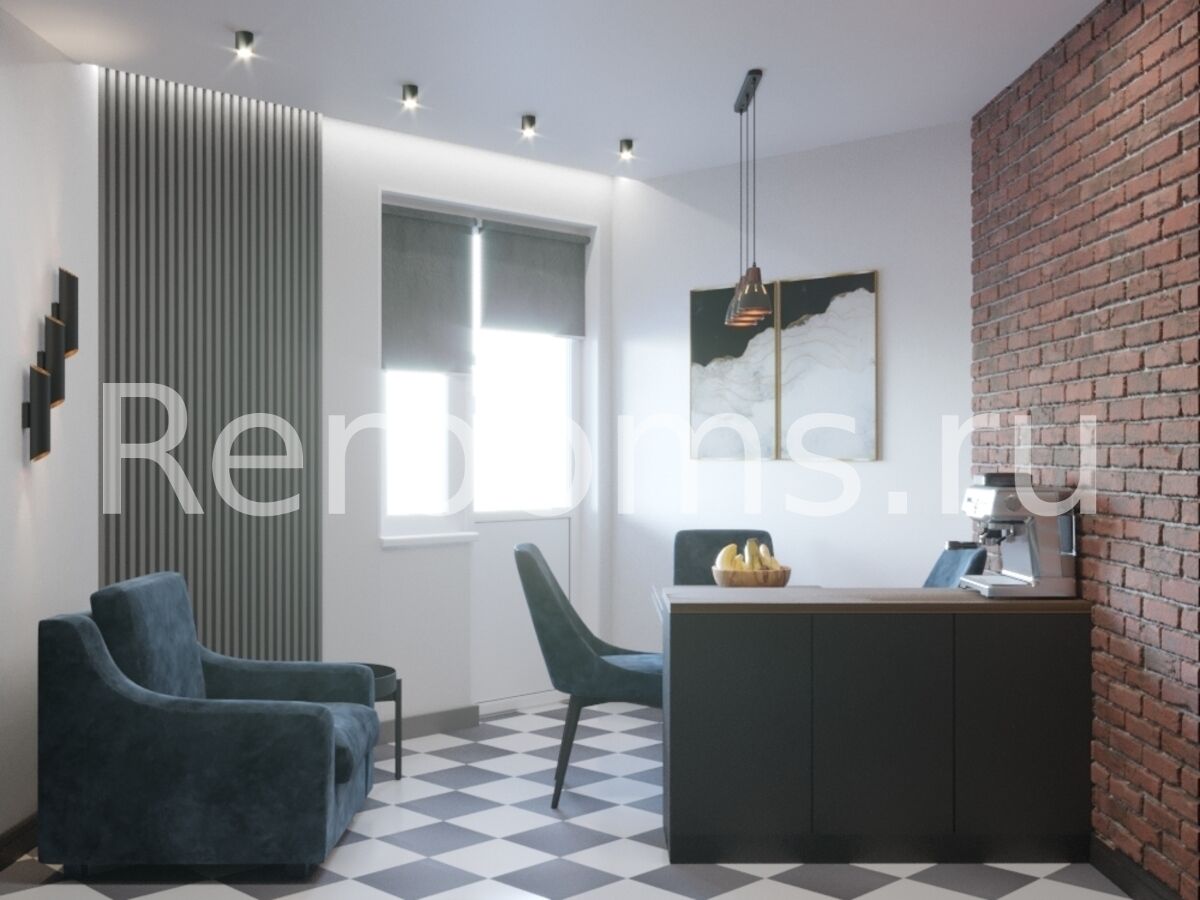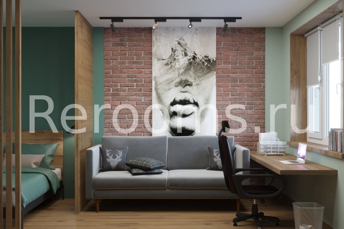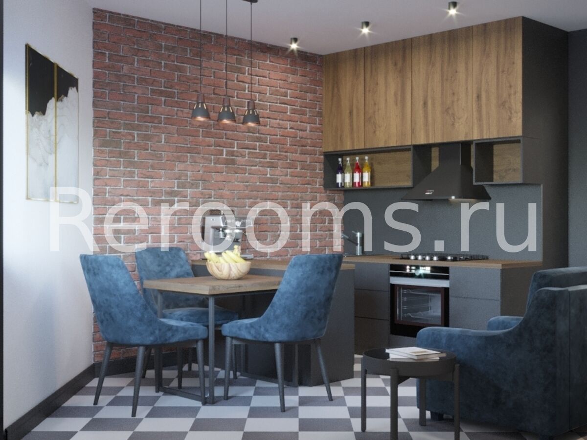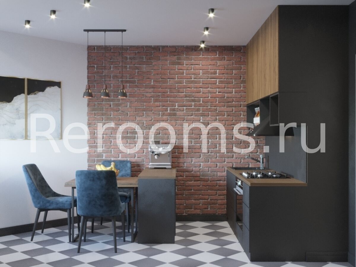 Интерьер этой однокомнатной квартиры выполнен в стиле лофт. Деревянные поверхности, кирпич, современные индустриальные светильники, а также металлические элементы декора придают помещению брутальный дух фабричного пространства. В интерьере преобладают характерные для лофтовой стилистики цвета, такие как терракотовый, черный, древесный. Пространство квартиры функционально и четко соответствует выбранной концепции.