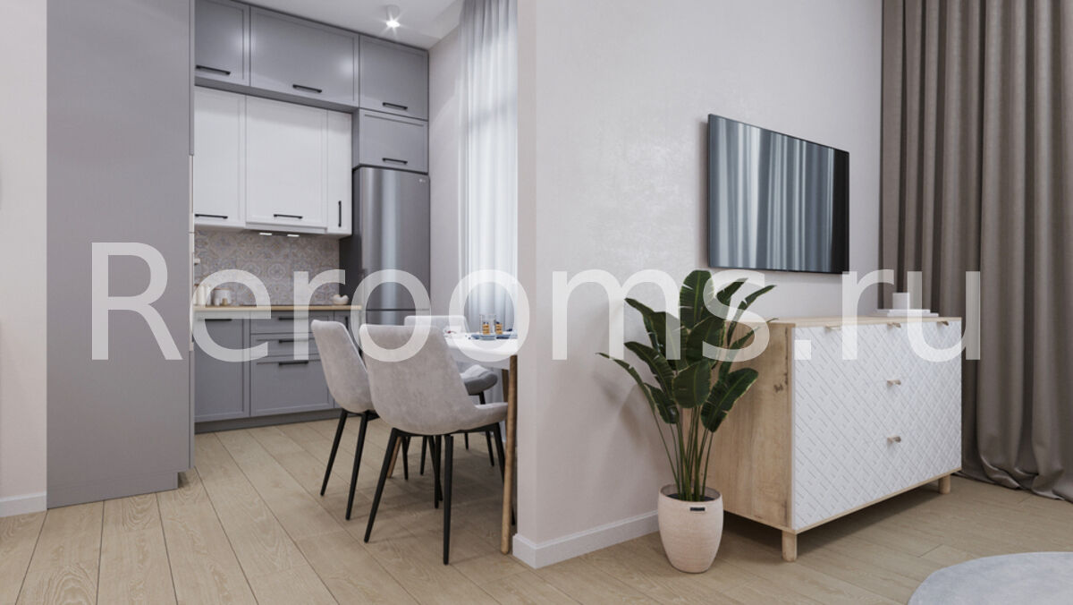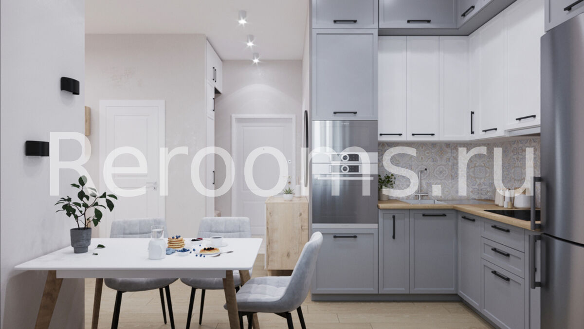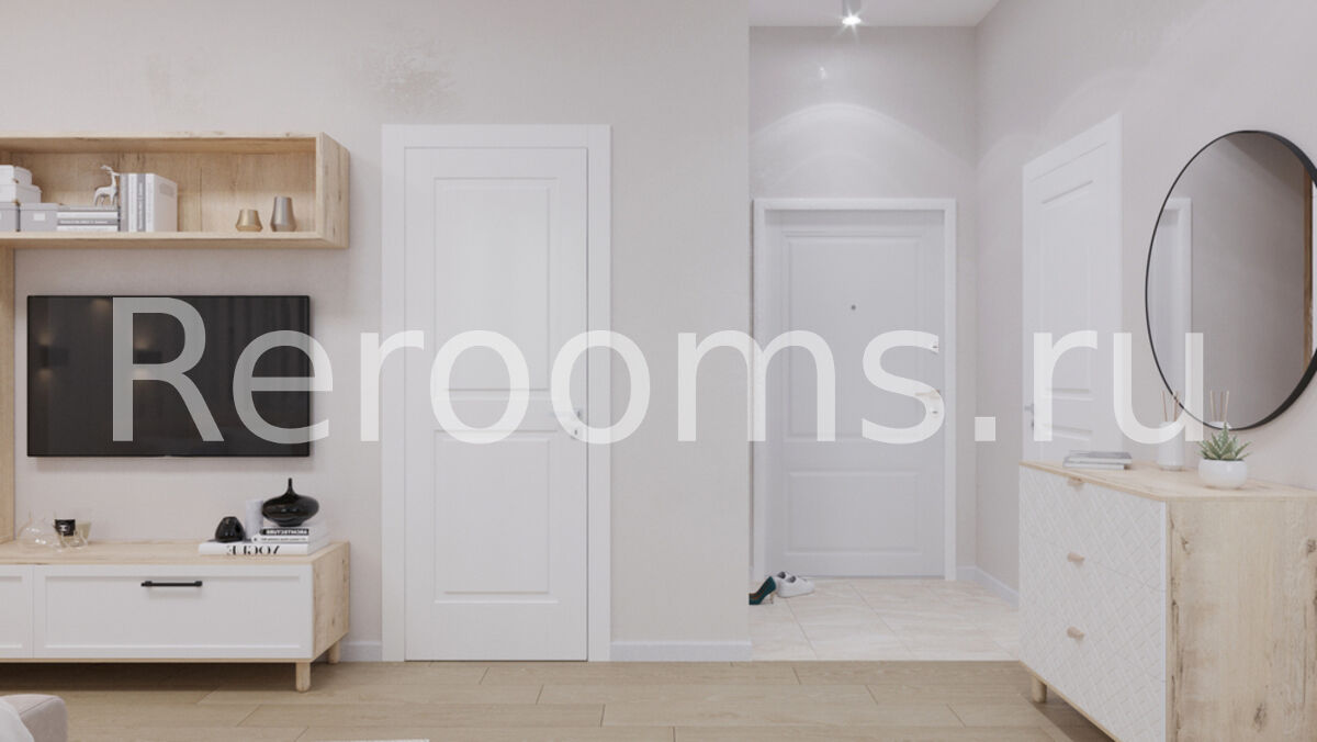 Проект этой однокомнатной квартиры выполнен в скандинавском стиле. Дизайн отличается лаконичностью и изысканным видом. В интерьере использовали характерные для скандинавской стилистики серый, белый и древесный цвета. Наличие натуральных материалов в отделке и оформлении создает в помещении особую атмосферу тепла и уюта.