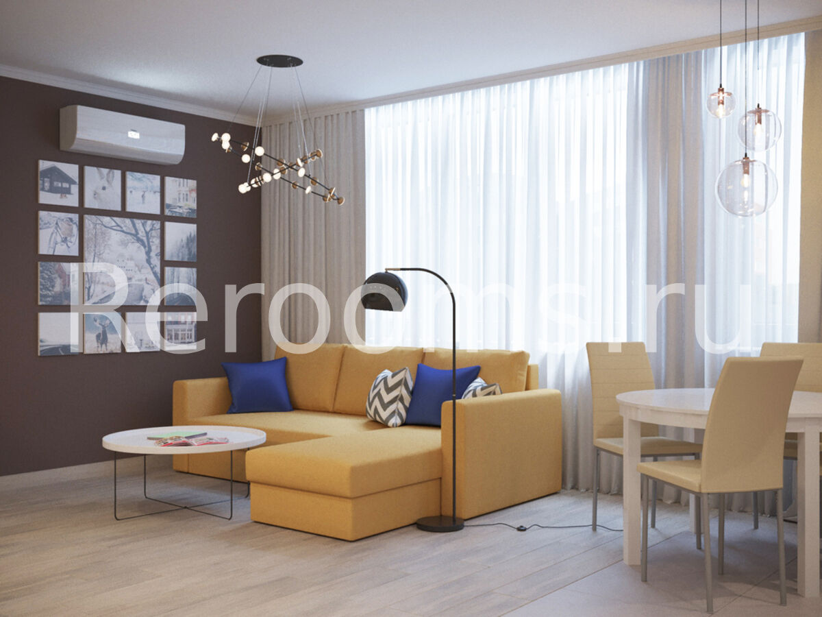 Дизайн-проект трехкомнатной квартиры 71.61 м² Стиль Фьюжн для ЖК "Отрада"