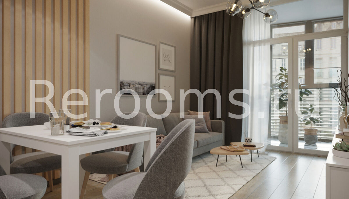 Дизайн-проект двухкомнатной квартиры выполнен в модном современном стиле. Сдержанная цветовая гамма с преобладанием бежевых и серых тонов делает пространство необычайно гармоничным и структурированным. Каждое помещение квартиры не только красиво, но и функционально. Главная изюминка интерьера - панорамные окна, которые не только пропускают максимум света, но и являются стильным элементом интерьера. Эстетичный дизайн квартиры позволяет расслабиться и отдохнуть в теплом семейном кругу.