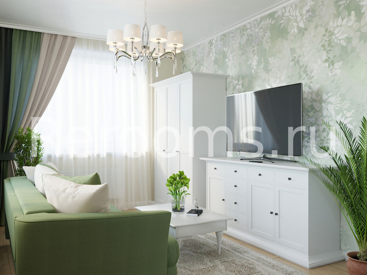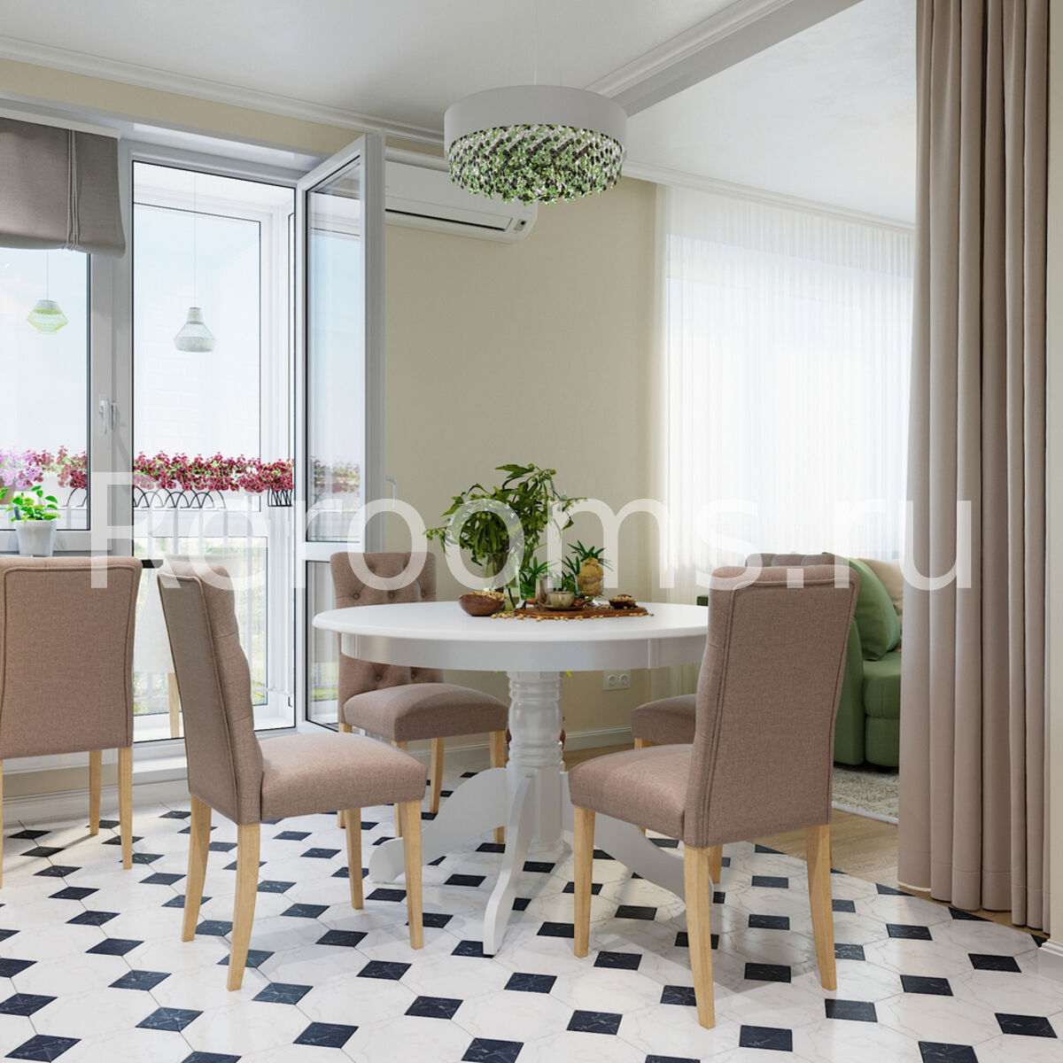 Дизайн-проект этой трехкомнатной квартиры, выполненный в стиле современная классика, получился очень изящным и гармоничным. Удачная комбинация цветов, и использованием бежевого, травянисто-зеленого, пыльно-розового и голубого делает интерьер особо привлекательным и эстетичным. Пространство кухни отделено от гостиной декоративной шторой. Это позволяет в случае необходимости сделать помещения более приватными и в то же время не разбивает целостность интерьера. Все комнаты в квартире не только красивы, но и функциональны.