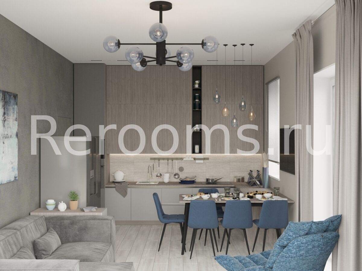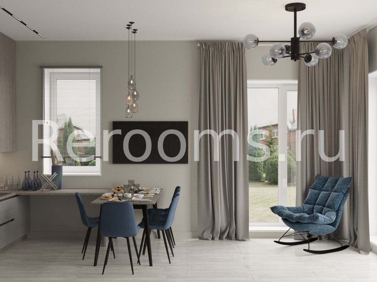 Дизайн-проект для первого этажа частного дома выполнен в модном и актуальном стиле модернизм. Четкая геометрия пространства, интересные архитектурные формы, обилие разнообразных текстур, современные элементы декора, как основные составляющие модернизма, в данном интерьере смотрятся необычайно гармонично и целостно. Разноплановое освещение придает пространству индивидуальный характер и особый уют, а цветовая гамма с использованием серого, бежевого и акцентного синего делает его интересным и неординарным.