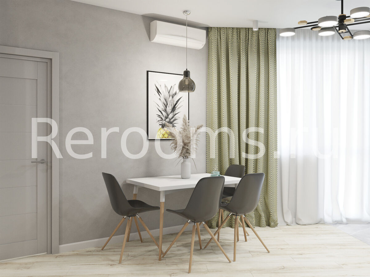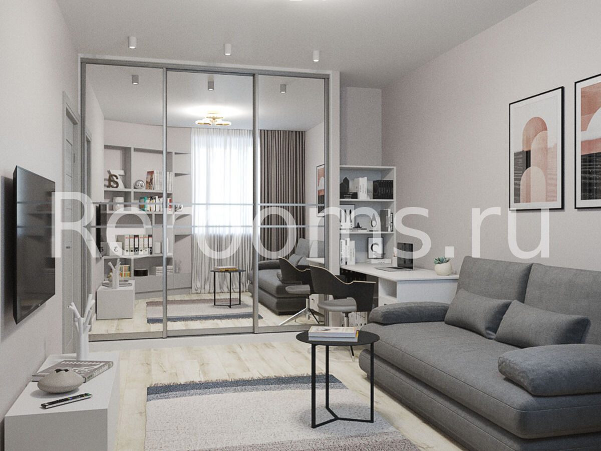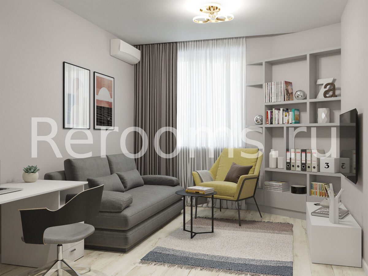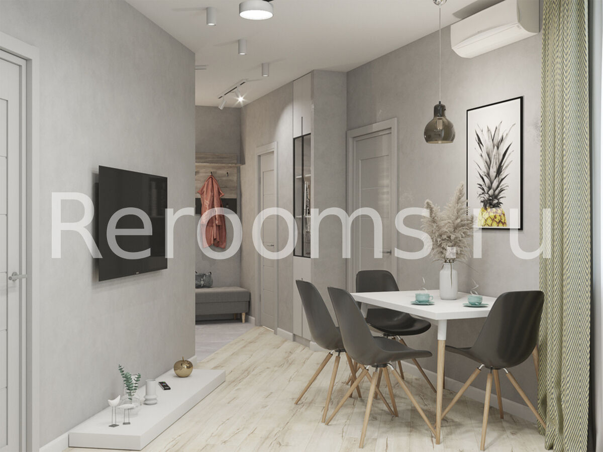 Интерьеры в стиле контемпорари полностью соответствуют современным требованиям комфорта, простоты и функциональности. Базовая палитра, выбранная для этой однокомнатной квартиры, достаточно нейтральна и создает идеальную основу для более ярких цветовых акцентов. Простые формы и чистые линии - как одна из главных особенностей данного интерьера, нашла свое отражение в четкой геометрии потолков и стен, мебели и лаконичных предметах декора.