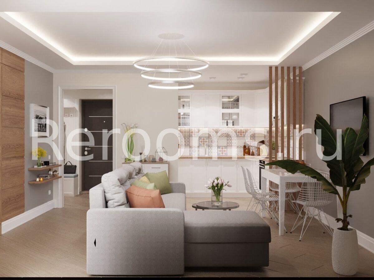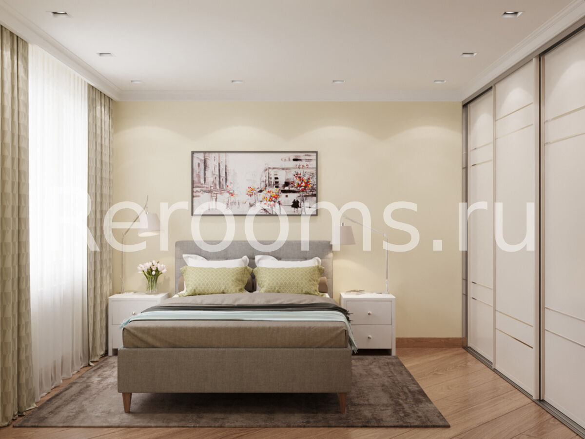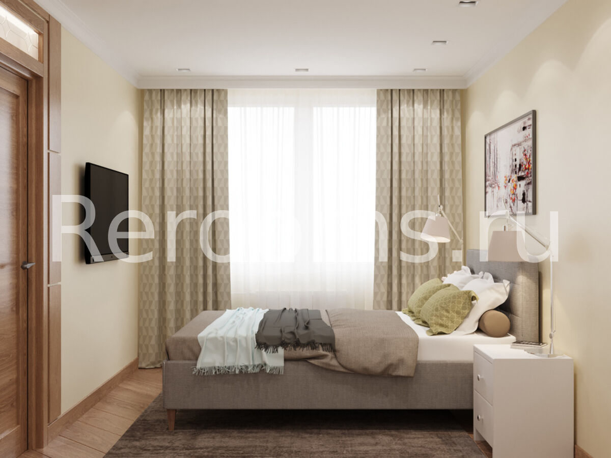 Интерьер данной квартиры выполнен в сдержанных тонах, здесь преобладают бежевый, белый и теплый коричневый цвет.
