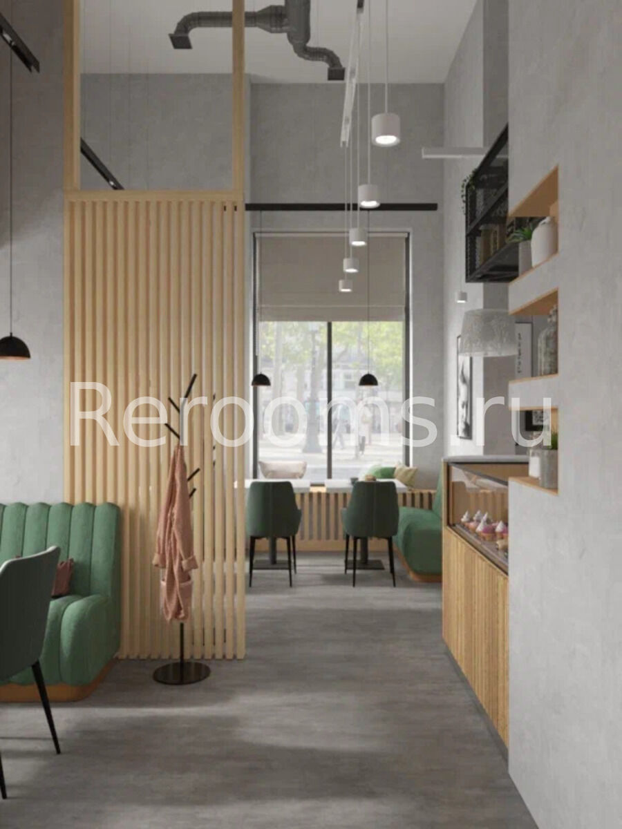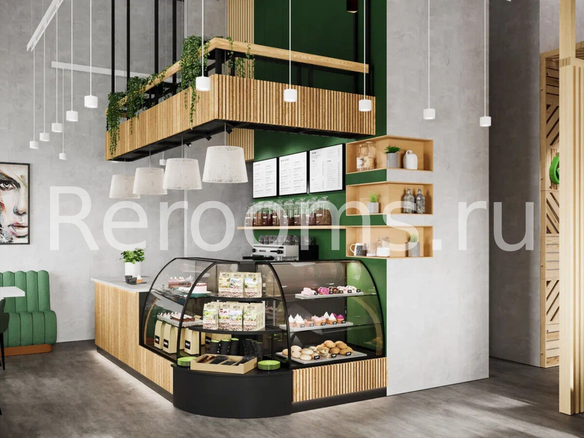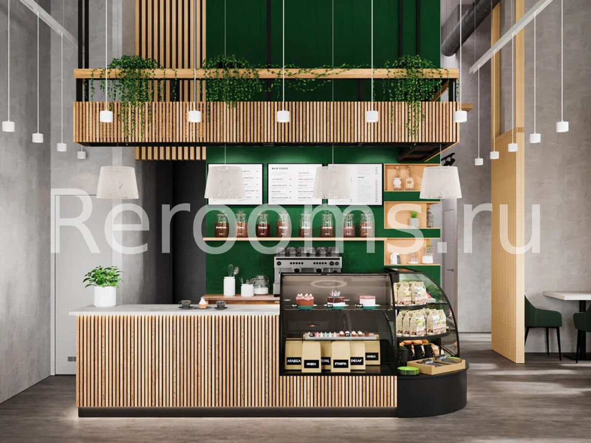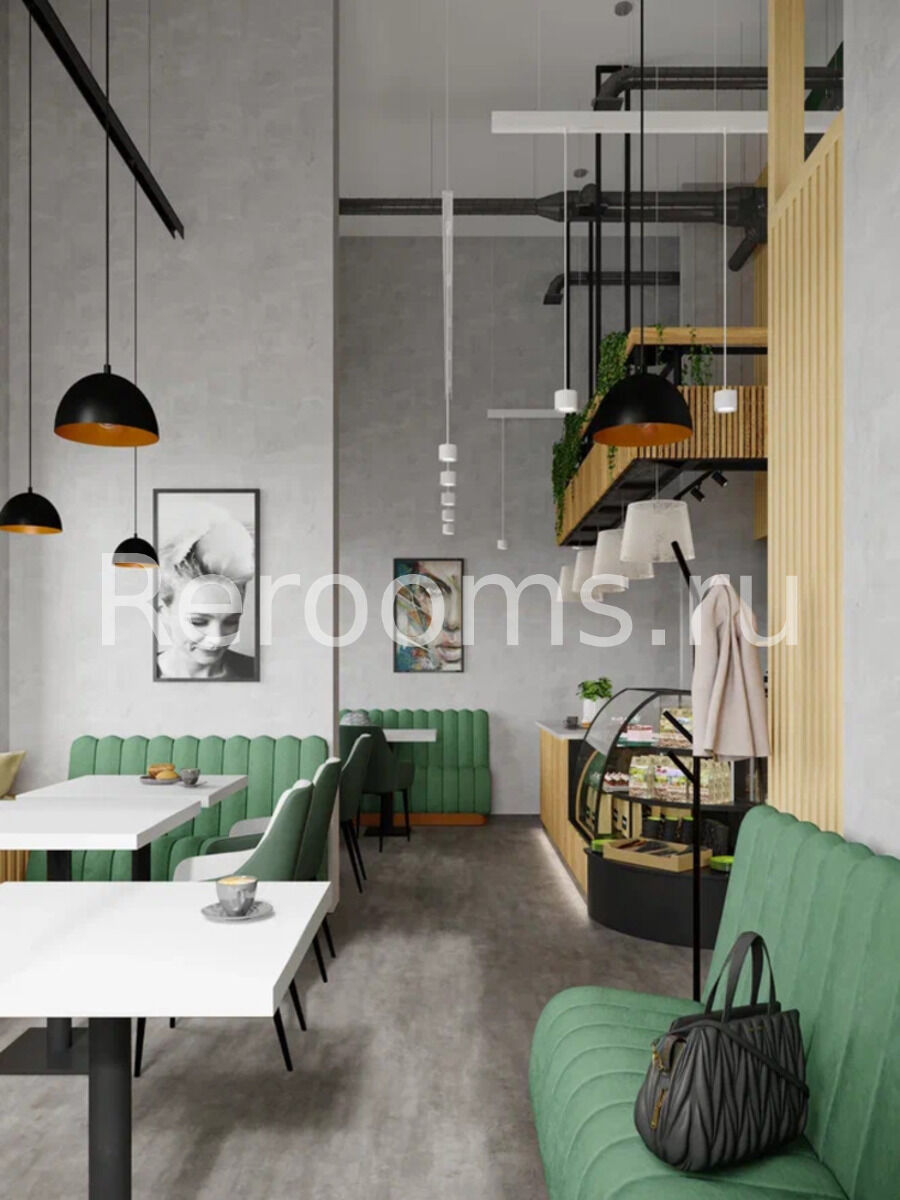 Интерьер этого современного кафе выполнен в стиле лофт. Кирпичная кладка, отделка под бетон, индустриальные светильники и грубое напольное покрытие придают помещению брутальный дух фабричного пространства. В интерьере преобладают характерные для лофтовой стилистики цвета, такие как терракотовый, серый, графитовый с яркими акцентами в виде голубого и мятного цветов, использованных в некоторых зонах помещения. Удобная расстановка мебели позволяет провести время в кафе с максимальным комфортом.