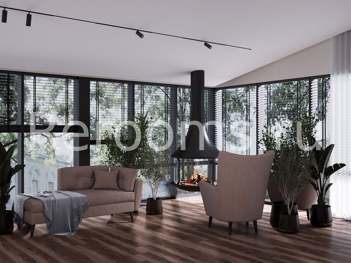 Эстетика модернизма в интерьере этого дома проявляется через элегантность, строгую архитектурную структуру и гармонию цвета. Удобная и лаконичная мебель завершает образ, формируя современное и цельное пространство.
