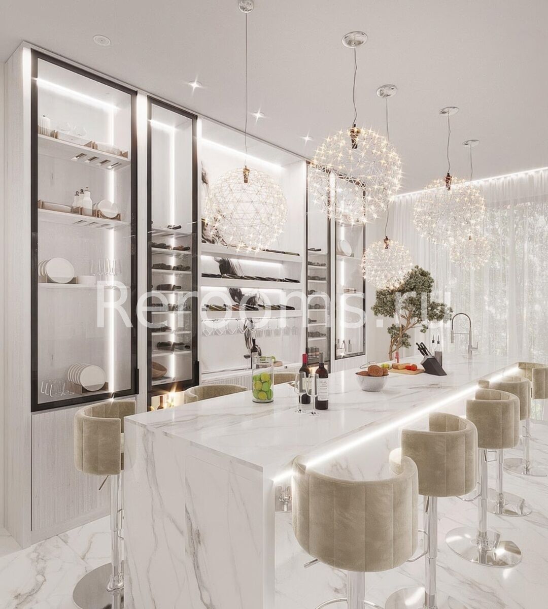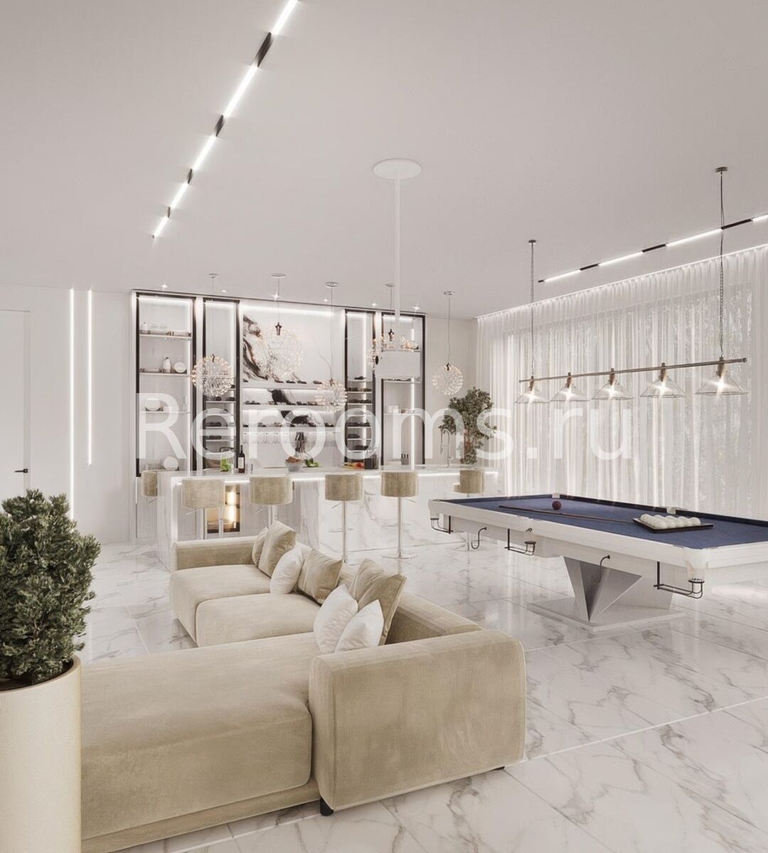 Дизайн этого дома основан на принципах современного стиля. Светлая и воздушная палитра, разнообразие текстур, высококачественные отделочные материалы и грамотно спланированное освещение сформировали интерьер, сочетающий уют и эстетическую выразительность.