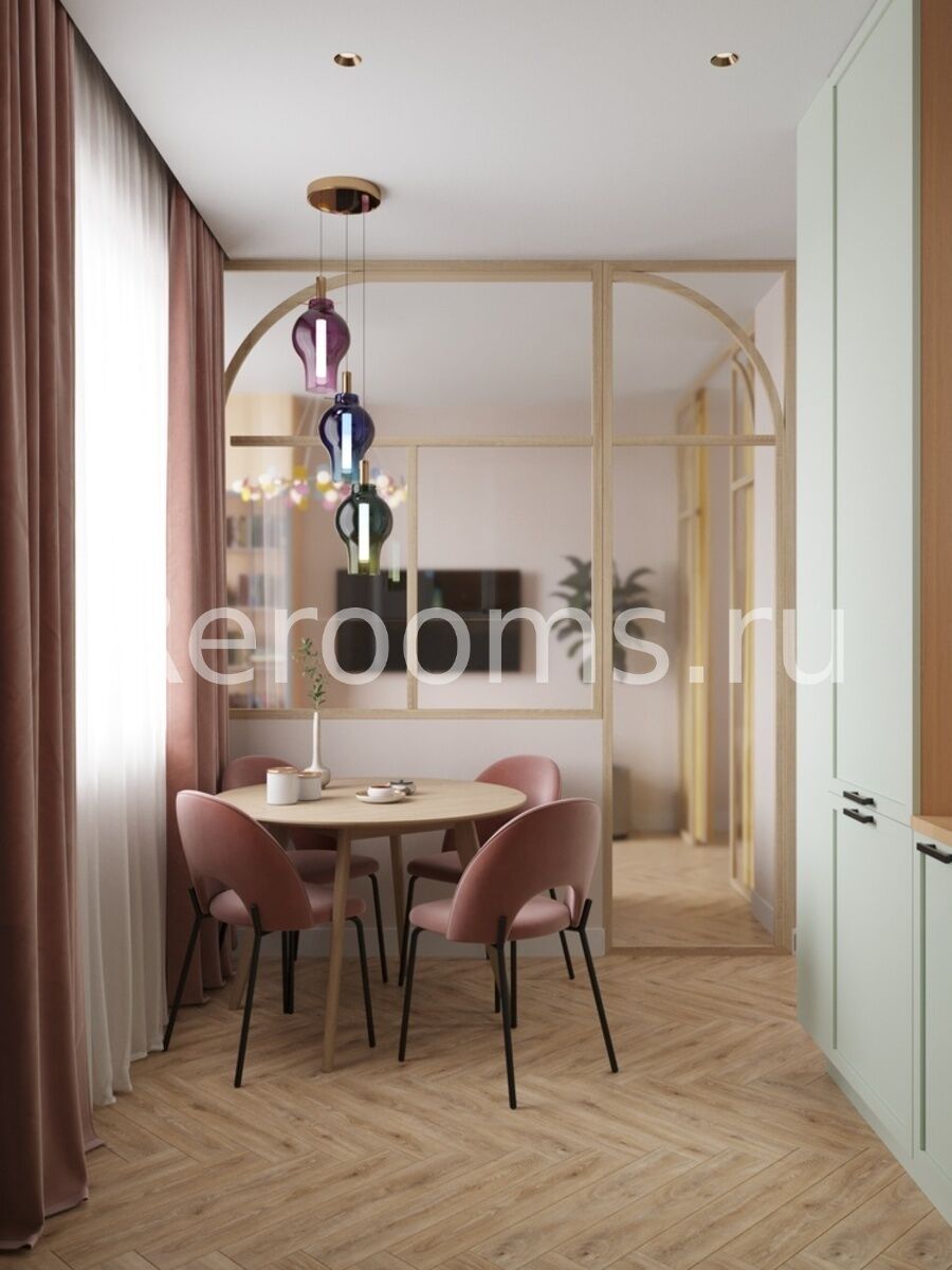 Проект этой квартиры выполнен в скандинавском стиле. Дизайн отличается лаконичностью и изысканным видом. Наличие натуральных материалов и древесных текстур в отделке и оформлении создает в помещении особую атмосферу тепла и уюта.