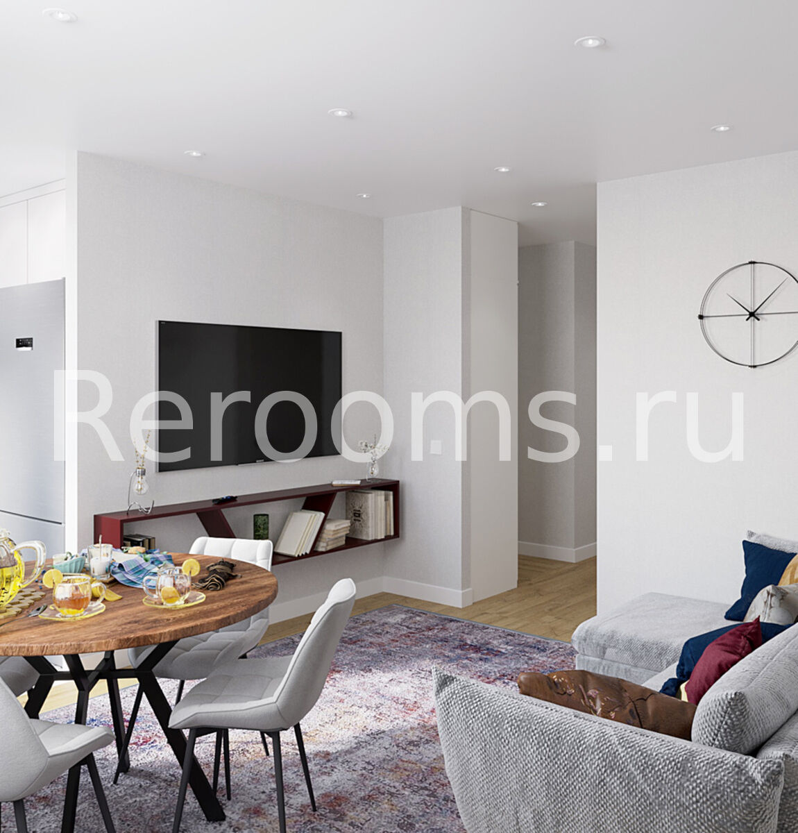 Разрабатывая проект этой трехкомнатной квартиры, дизайнер ориентировалась на основы современного стиля. Функционализм и эстетическая привлекательность здесь на главных ролях. Базовая серая палитра с использованием более ярких акцентных цветов придает пространству ультрамодный вид.