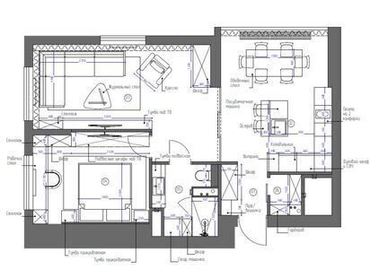 Дизайн-проект двухкомнатной квартиры выполнен в стиле модернизм. Четкая геометрия пространства, интересные архитектурные формы, разнообразные текстуры, современные элементы декора в интерьере этой квартиры смотрятся необычайно гармонично и целостно. Разноплановое освещение придает пространству индивидуальный характер, а контрастная цветовая гамма делает его стильным и уникальным.