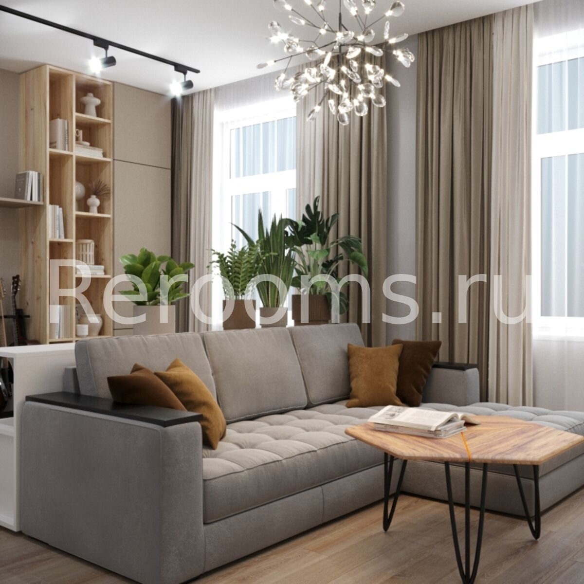 Интерьеры в стиле контемпорари полностью соответствуют современным требованиям комфорта и функциональности. Базовая палитра, выбранная для этой двухкомнатной квартиры, достаточно нейтральна и создает идеальную основу для более контрастных акцентов. Интересные формы и чистые линии - одна из главных особенностей интерьера в стиле контемпорари, нашла свое отражение в четкой геометрии потолков и стен, мебели и предметах декора.