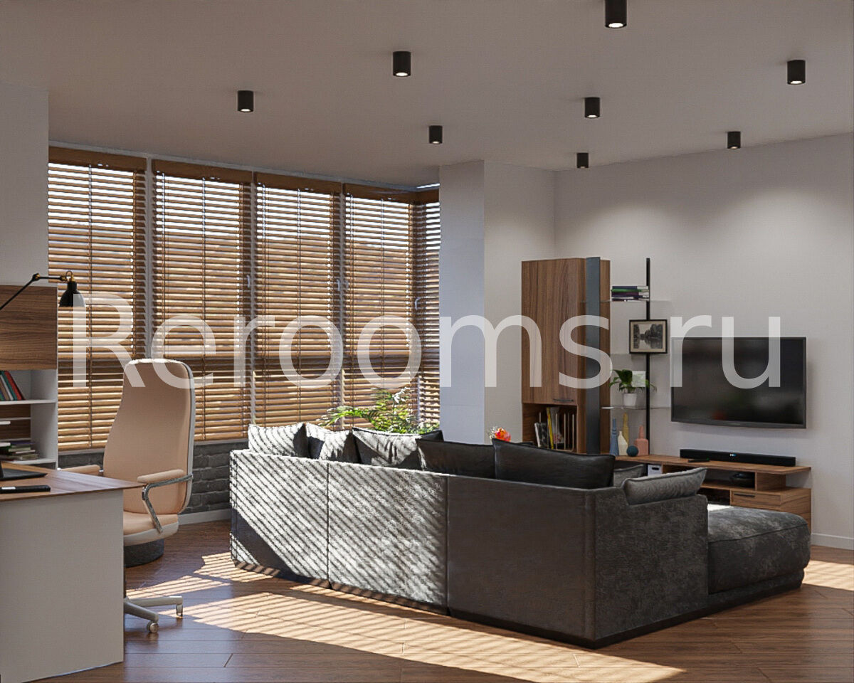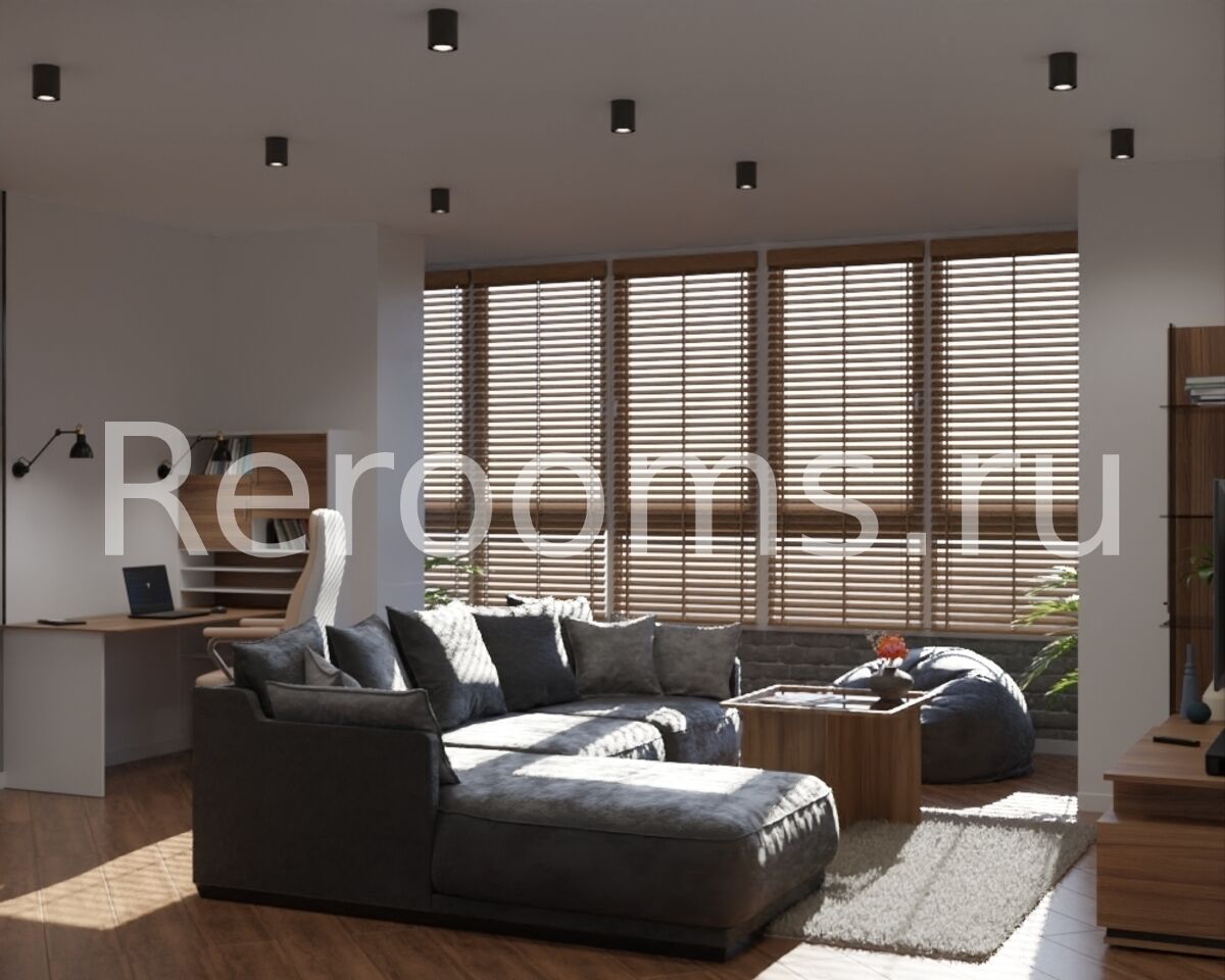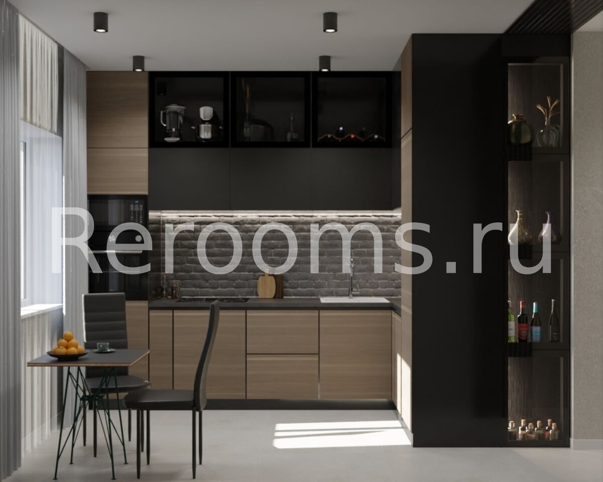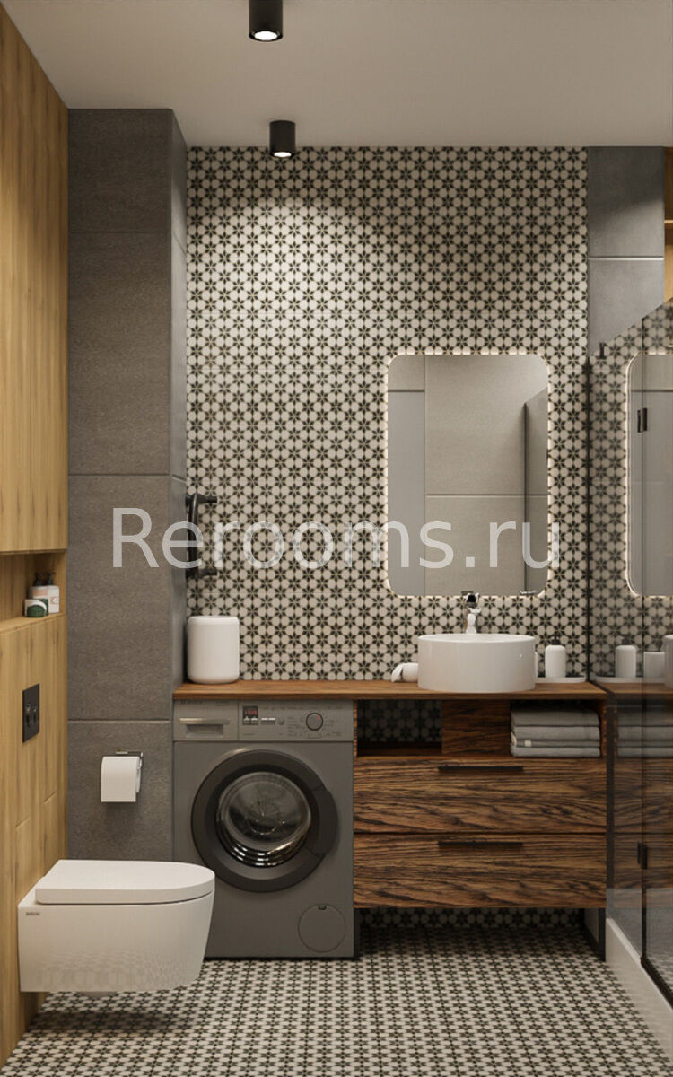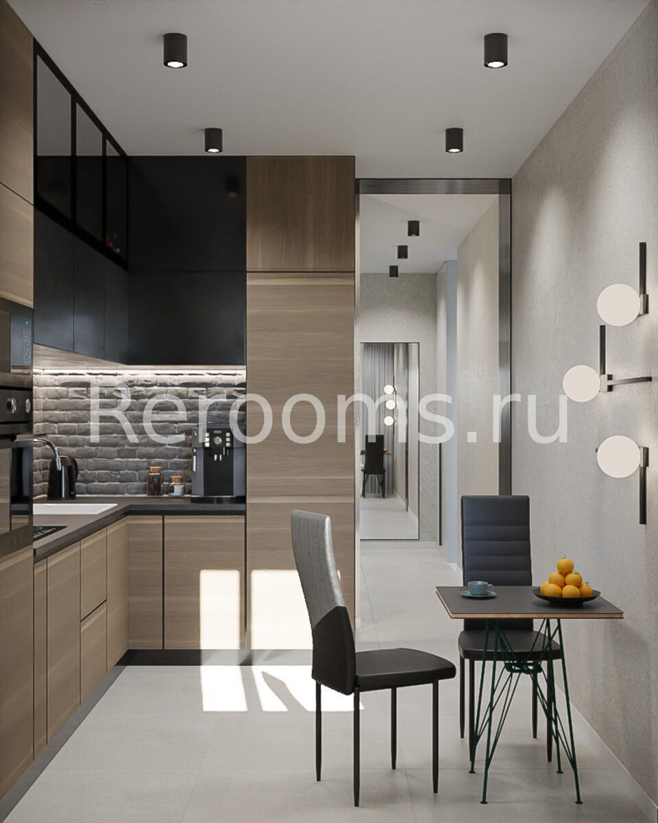Дизайн-проект этой двухкомнатной квартиры выполнен в стиле модернизм. Во главу угла дизайнер поставила понятия многофункциональности и комфорта. В результате интерьер получился необычайно удобным и эргономичным. Все предметы в квартире сочетаются друг с другом и в полной мере отражают специфику стиля. Спокойная цветовая гамма с использованием глубоких оттенков серого, а также натурального древесного создают в помещении атмосферу спокойствия и умиротворения.