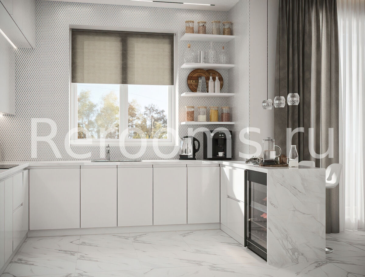 Дизайн-проект дома выполнен в стиле модернизм. Четкая геометрия пространства, интересные архитектурные формы, обилие разнообразных текстур, современные элементы декора в интерьере смотрятся необычайно гармонично и целостно. Разноплановое освещение придает пространству индивидуальный характер, а светлые цвета делают пространство еще более просторным и стильным.