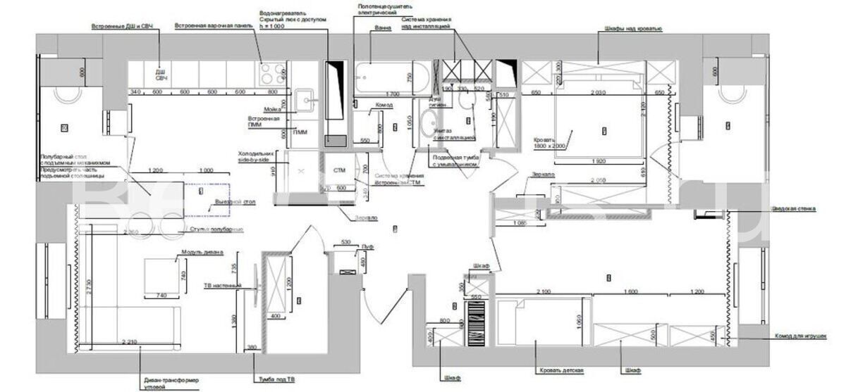 Дизайн-проект трехкомнатной квартиры выполнен в современном стиле. Разнообразные текстуры, современные элементы декора, ненавязчивые цвета в интерьере смотрятся необычайно гармонично и целостно. Разноплановое освещение придает помещению индивидуальный характер.