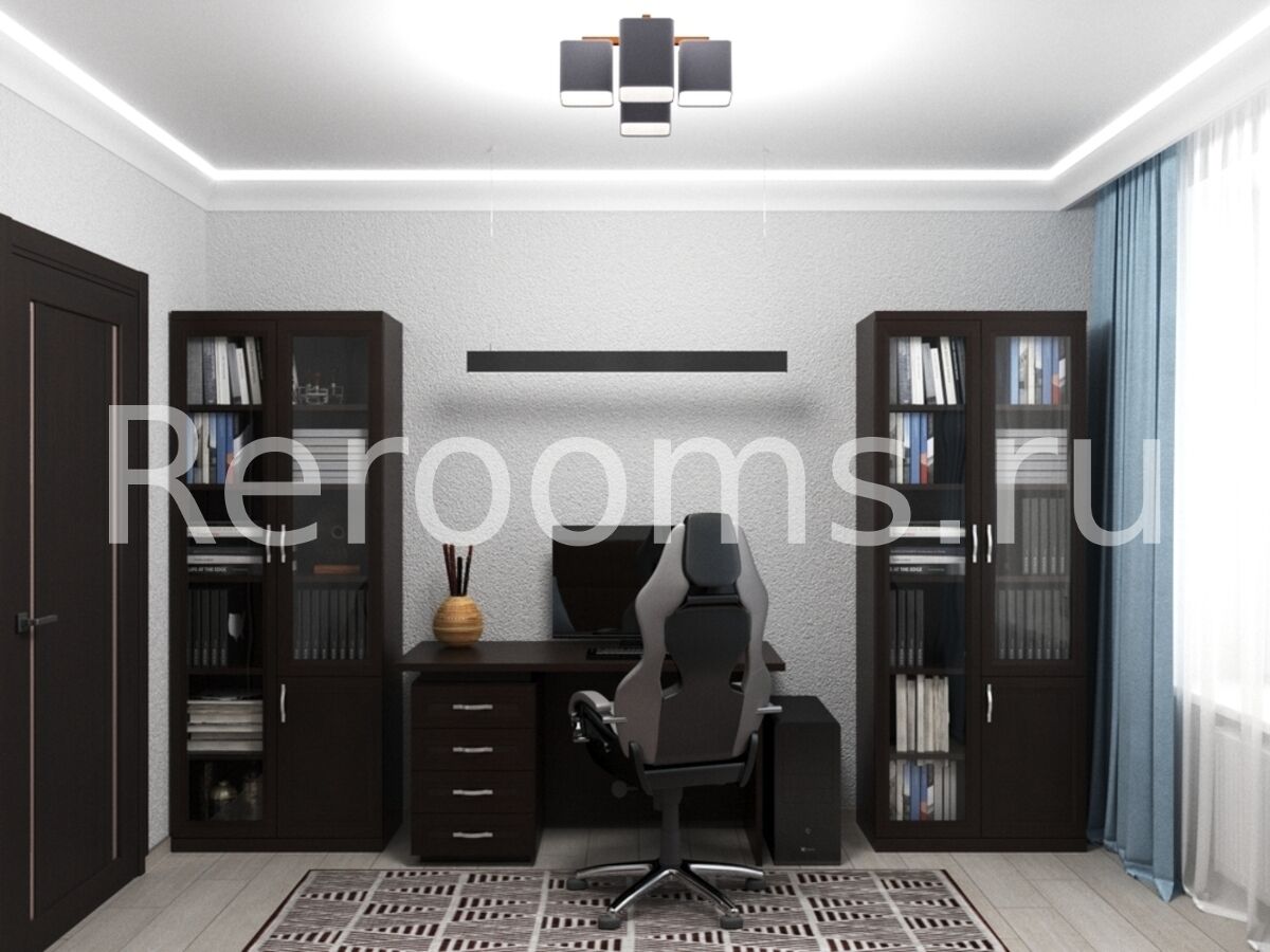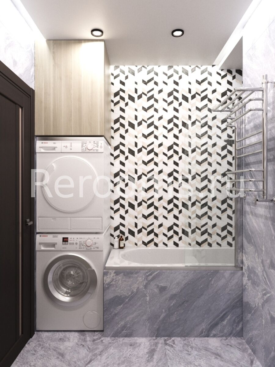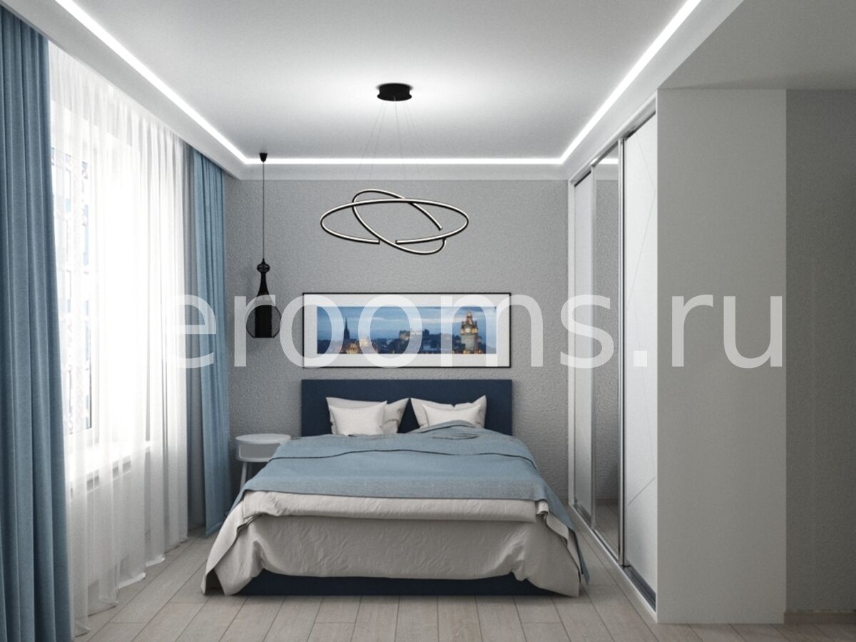 Дизайн-проект этой квартиры, выполненный в стиле модернизм, получился очень стильным и современным. В кухне-гостиной разместили компактный мебельный гарнитур со встроенной техникой, обеденную группу и обустроили лаунж-зону с диваном и телевизором. Особое внимание в интерьере уделено цвету. Красивые оттенки серого и голубого, использованные не только в кухне-гостиной, но и в спальне, и в кабинете, красиво сочетаются между собой, делая пространство необычайно цельным и уютным. Большое внимание уделено освещению. Основные источники света дополнены локальными светильниками, которые обеспечивают квартиру мягким равномерным светом.