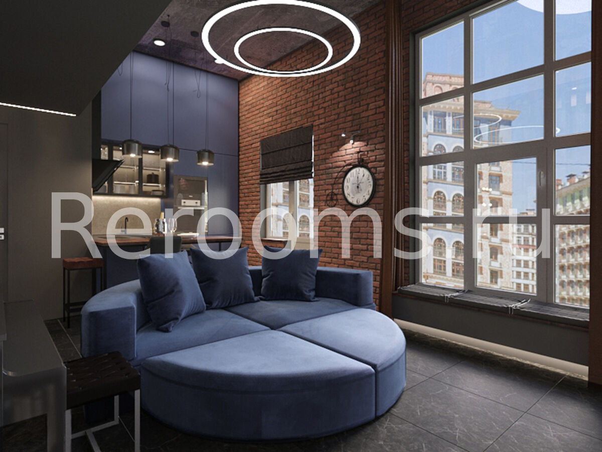 Дизайн-проект двухкомнатной квартиры выполнен в стиле лофт. Интерьер выдержан с соблюдением всех правил лофтовой стилистики. Кирпичная кладка, грубый бетон, характерная цветовая гамма - все это придает пространству ультрасовременный вид. Смелые архитектурные находки, разноплановая отделка и декор позволяют визуально поделить квартиру на несколько функциональных зон.