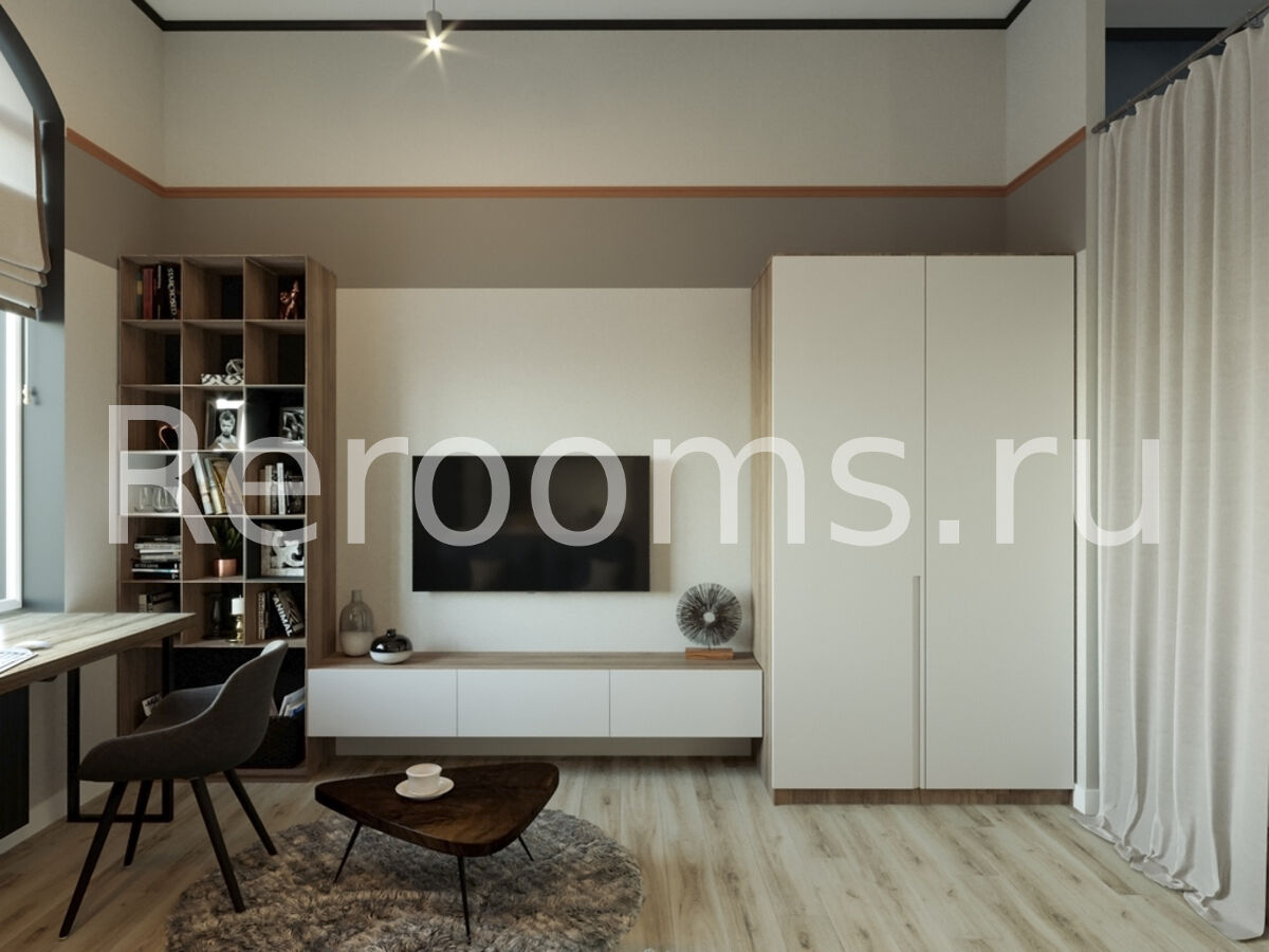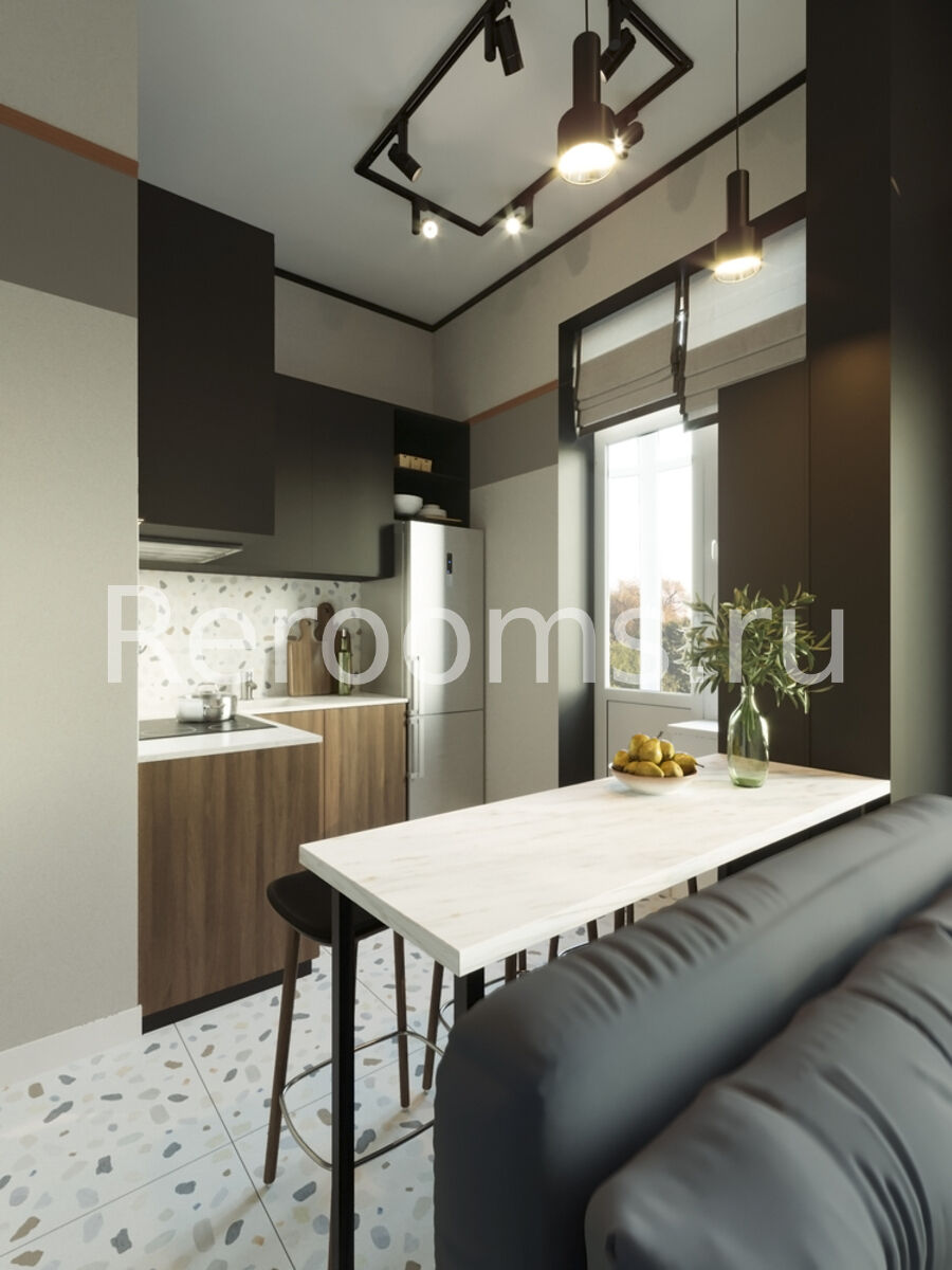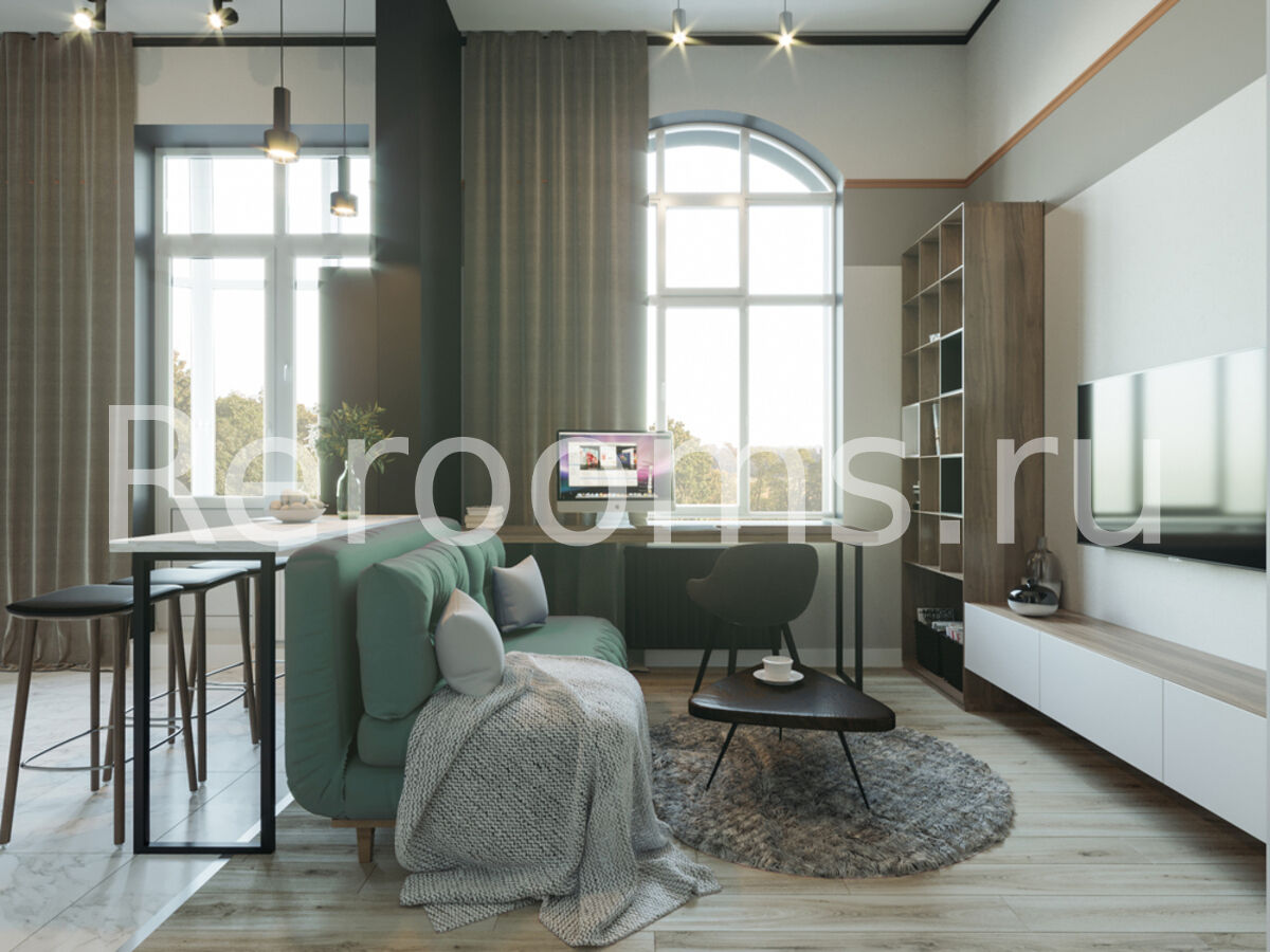 Дизайн-проект этой однокомнатной квартиры выполнен в модном современном стиле. Интерьер получился очень функциональным и эстетически привлекательным. Грамотное зонирование позволило на небольшой площади разместить несколько функциональных зон. Так в помещении оборудовали удобную гостиную, кухню, отдельную спальню и даже импровизированный рабочий кабинет. Сдержанная цветовая гамма с насыщенными акцентами, а также большие окна визуально расширяют границы пространства, наполняя его воздухом и светом. Красивый дизайн интерьера позволяет расслабиться и отдохнуть в теплом кругу семьи или друзей.