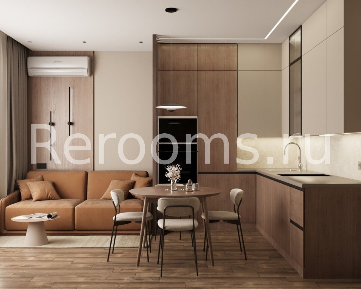 Интерьер этой квартиры оформлен в современном стиле. Сдержанная цветовая гамма в бежевых тонах придает пространству стильный и актуальный вид. Уникальная архитектура, сочетание разнообразных материалов и продуманное освещение создают эффектное и современное пространство.