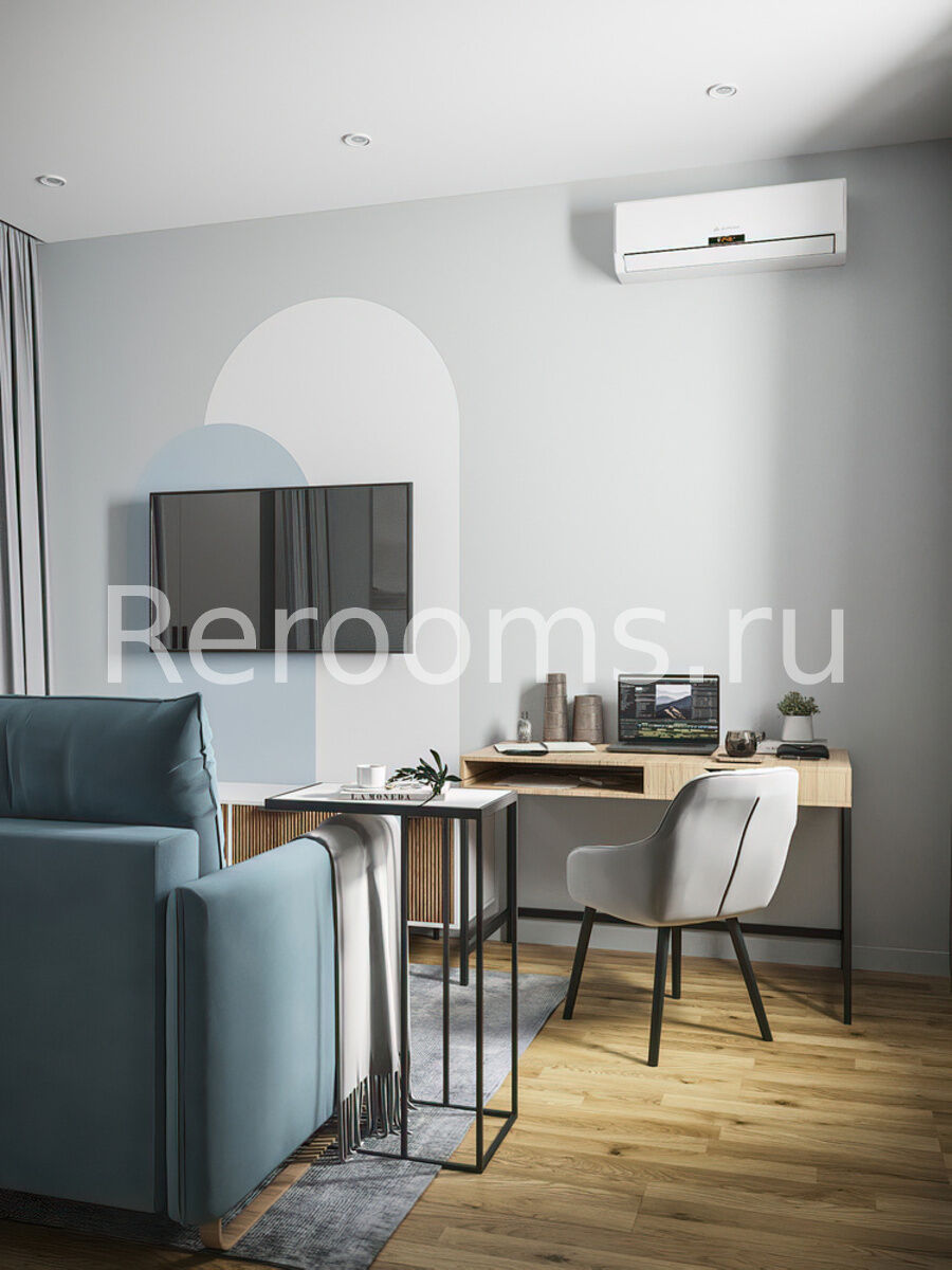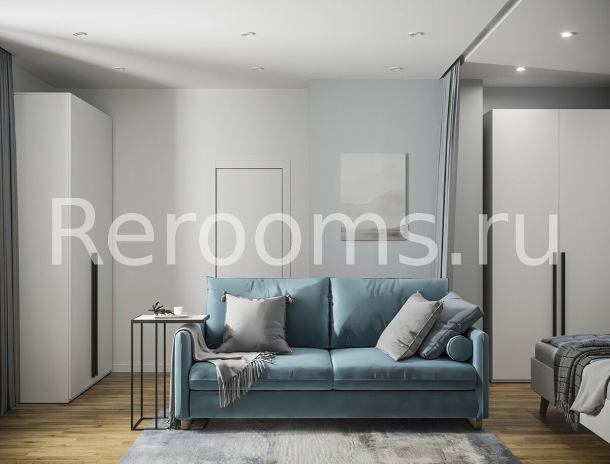 За основу оформления этой однокомнатной квартиры взят современный стиль. Гармоничное сочетание цветов, использование разнообразных текстур, высококачественные отделочные материалы, интересный световой сценарий - все это помогло создать комфортный и эстетически привлекательный интерьер.