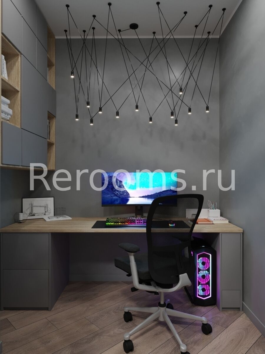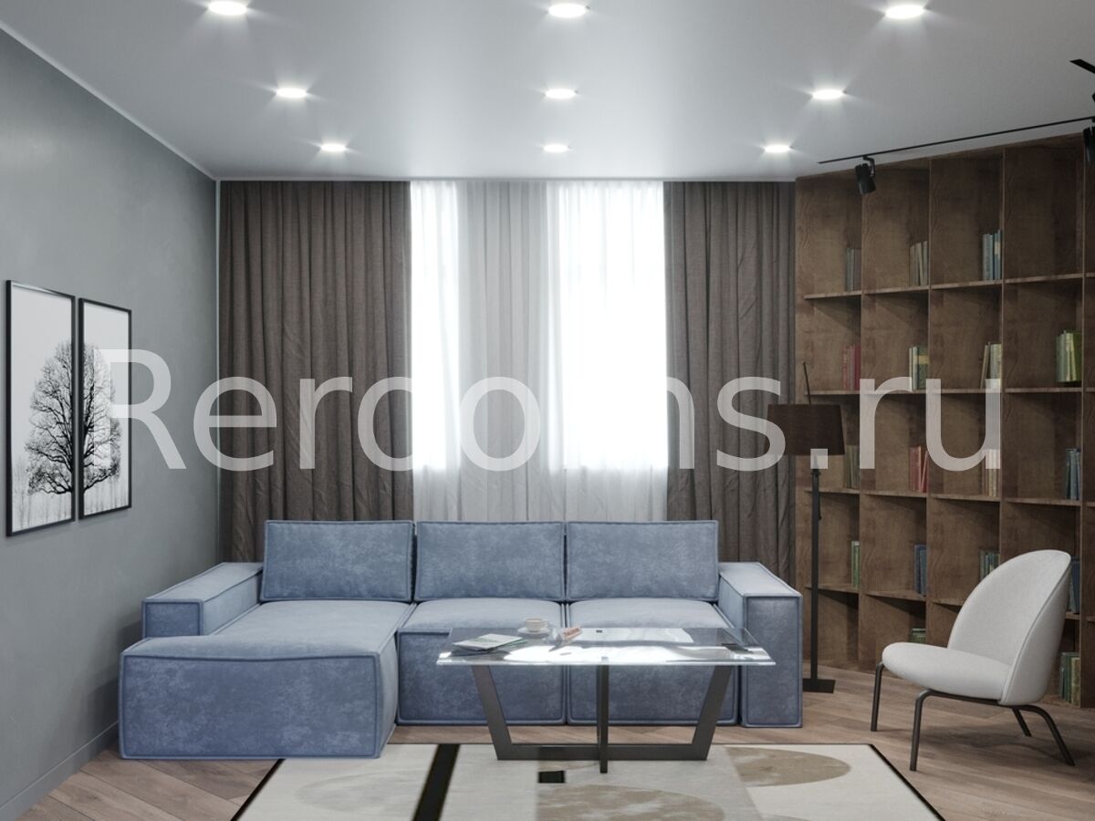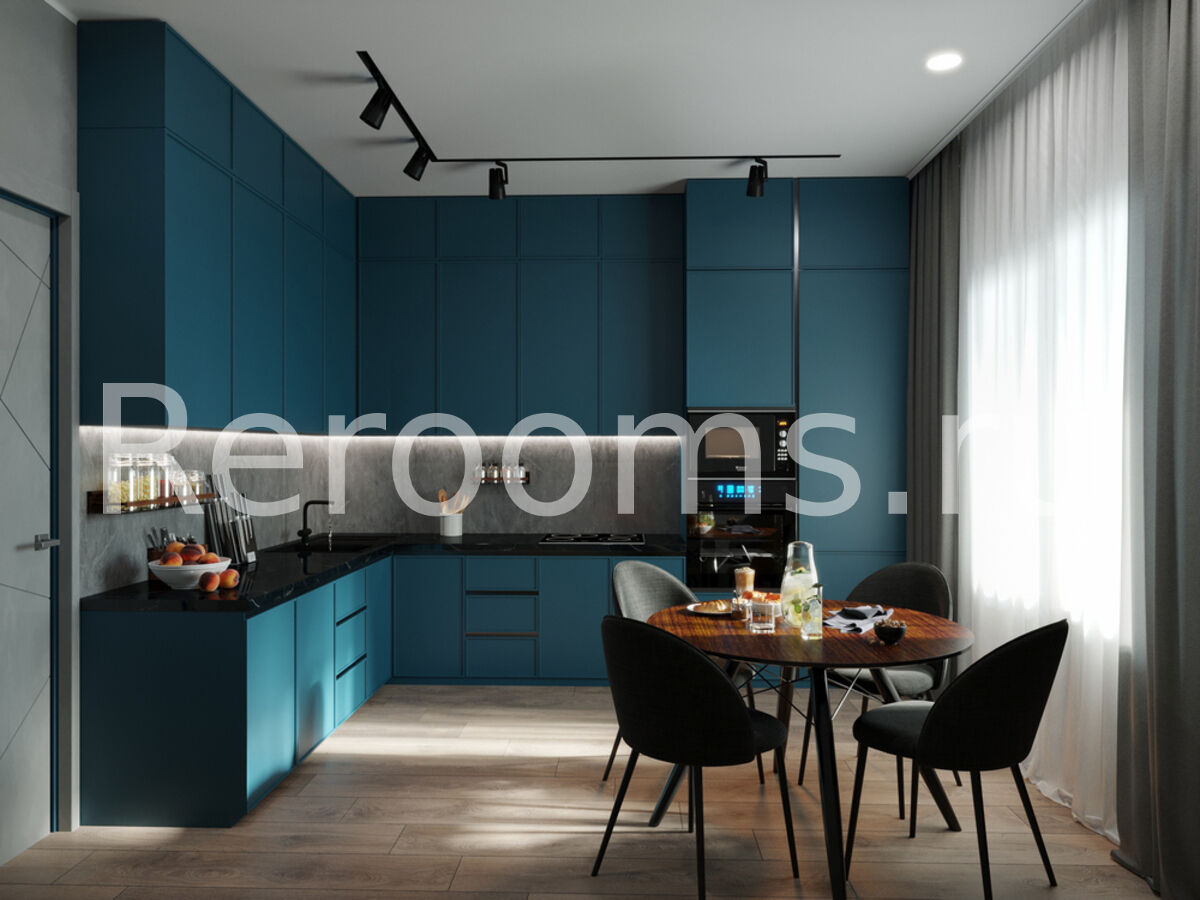 Дизайн этой двухкомнатной квартиры выдержан в современном стиле. Цветовая гамма с использованием глубоких оттенков серого и синего делают интерьер ультрамодным и красивым. Удачный микс различных материалов и оригинальный световой сценарий - все это работает на поддержание общей концепции пространства.