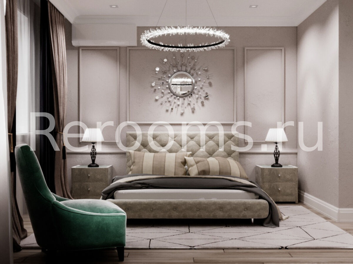 Современная классика в интерьере, какая она? Благородная и сдержанная, но совсем не консервативная, достаточно многогранная и открытая для новшеств. Именно так можно охарактеризовать дизайн этой двухкомнатной квартиры. Классическое элегантное оформление здесь сочетается с современным функционализмом. Спокойная умиротворенная атмосфера достигается путем использования светлых, натуральных оттенков, дополненных контрастными акцентами. Широкие карнизы, отделка под мрамор, декоративные молдинги и зеркала с фацетами создают в помещении торжественную атмосферу, присущую неоклассике.