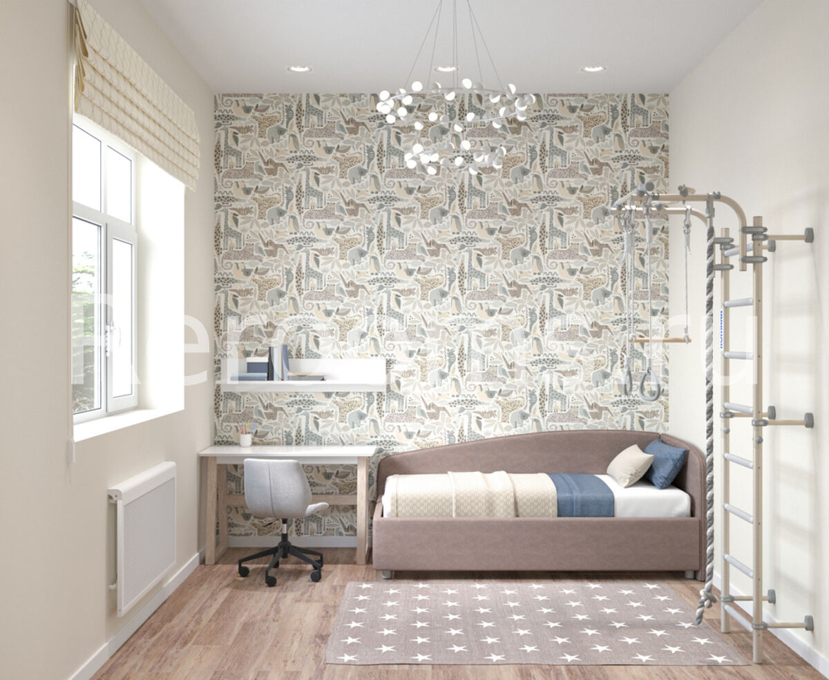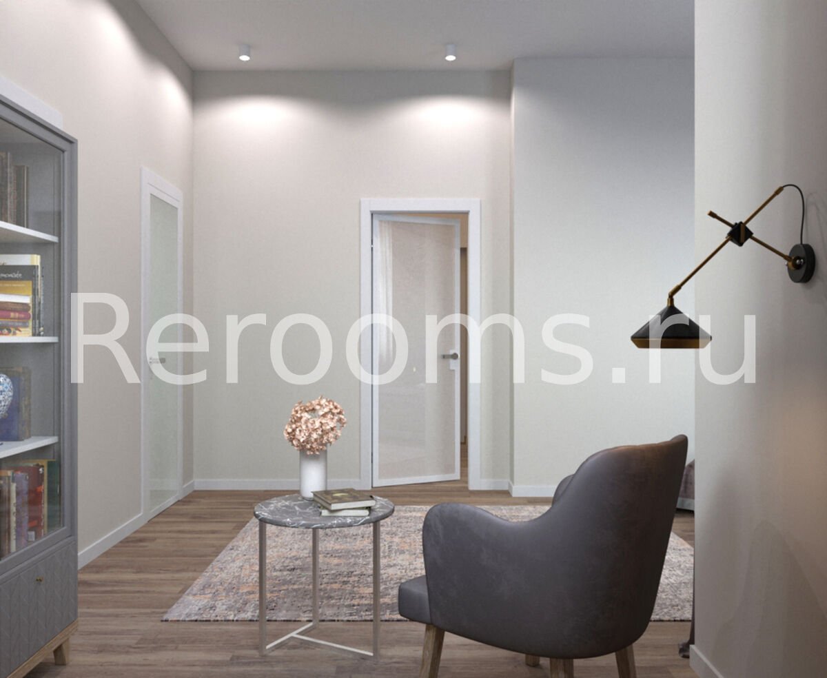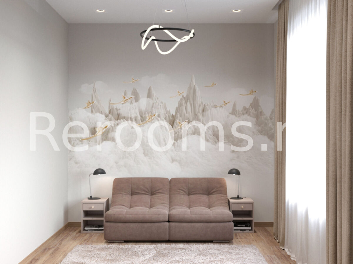 Дизайн-проект этажа таунхауса выполнен в стиле модернизм. Во главу угла дизайнер поставила понятия многофункциональности и комфорта. В результате интерьер получился необычайно удобным и эргономичным. Все предметы сочетаются друг с другом и в полной мере отражают специфику стиля. Спокойная цветовая гамма с преобладанием бежевого и серого создает в помещении атмосферу спокойствия и умиротворения.