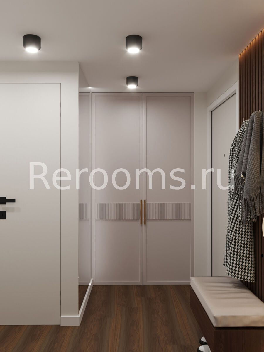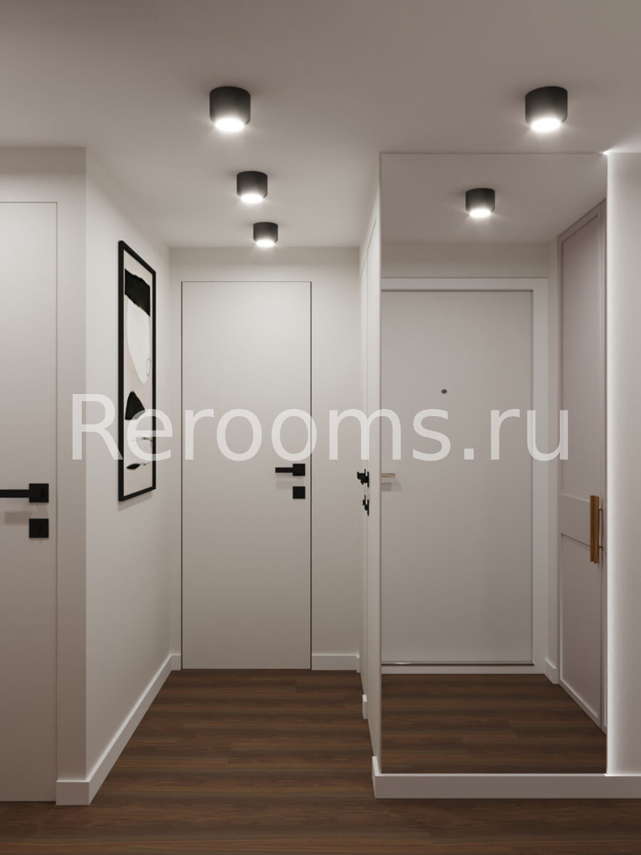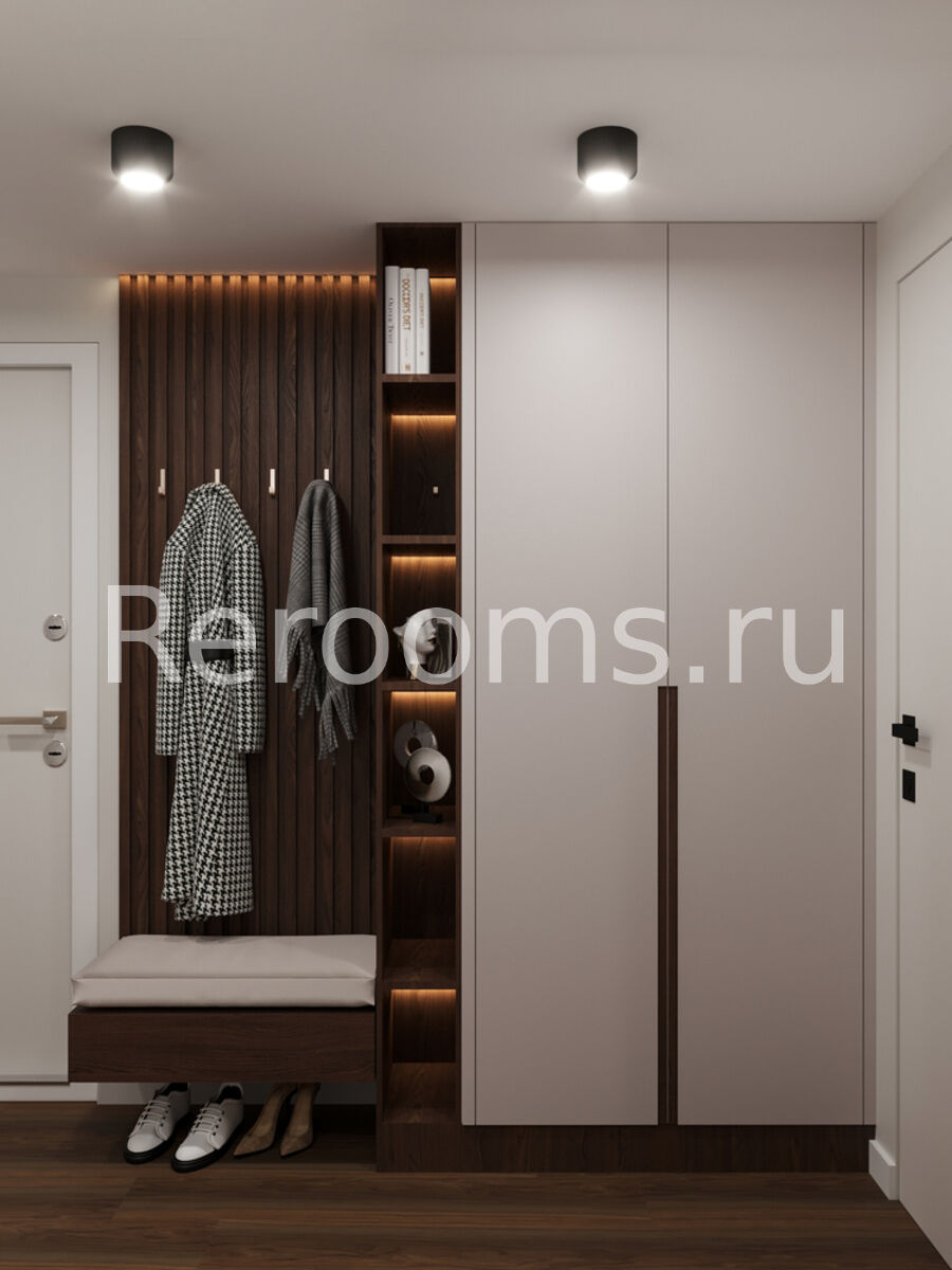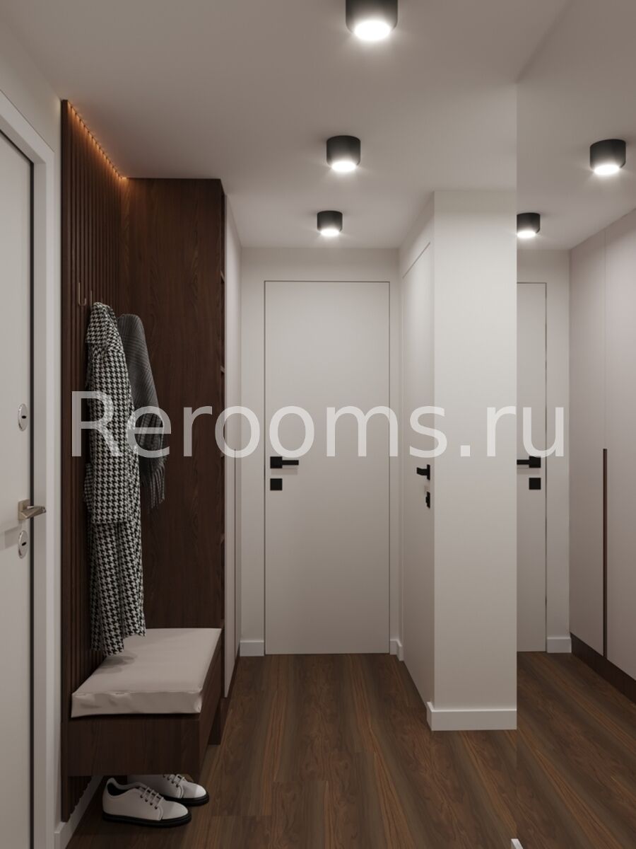 Интерьеры в стиле контемпорари полностью соответствуют современным требованиям комфорта и функциональности. Базовая палитра, выбранная для этой прихожей, идеально балансирует темное дерево, использованное в качестве напольного покрытия и элементов мебели. Интересные формы и чистые линии - одна из главных особенностей интерьера в стиле контемпорари, нашла свое отражение в четкой геометрии потолков и стен, мебели и светильников.