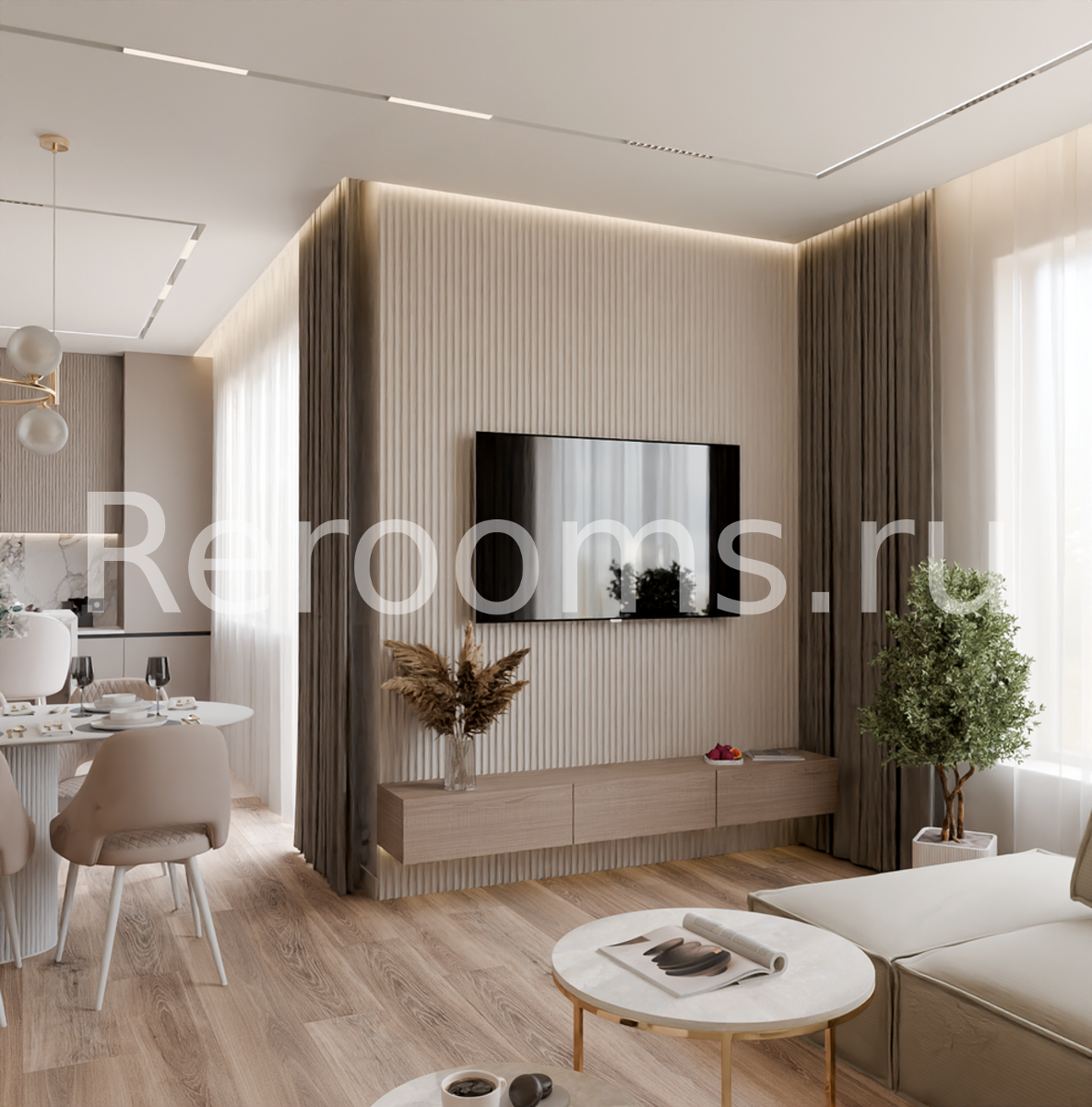 Интерьеры в стиле контемпорари полностью соответствуют современным требованиям эстетики и функциональности. Базовая палитра, выбранная для оформления этого дома, достаточно нейтральна и создает идеальную атмосферу для отдыха. Интересные формы и чистые линии - одна из главных особенностей интерьера в стиле контемпорари, нашла свое отражение в четкой геометрии потолков и стен, мебели и предметах декора.