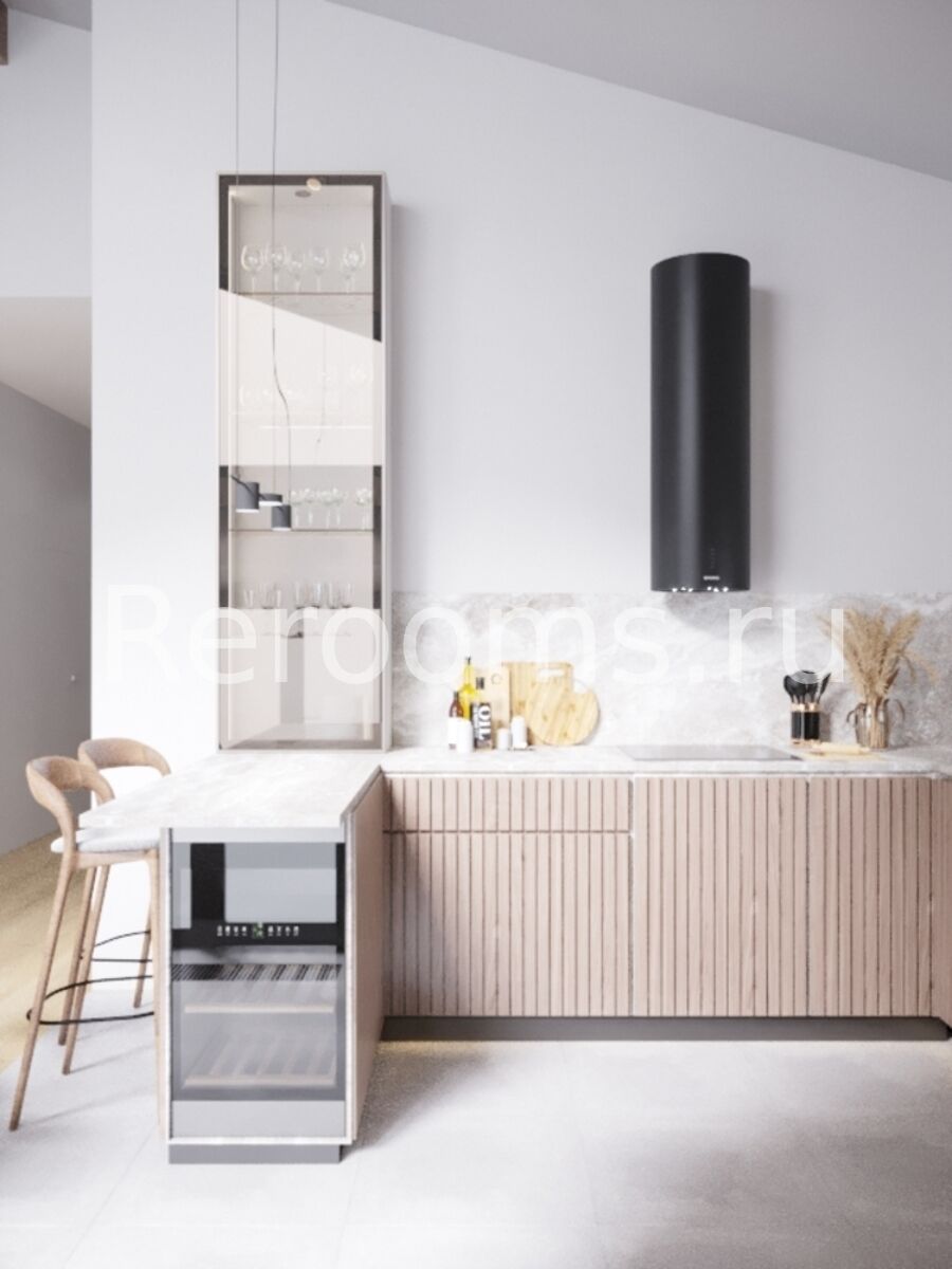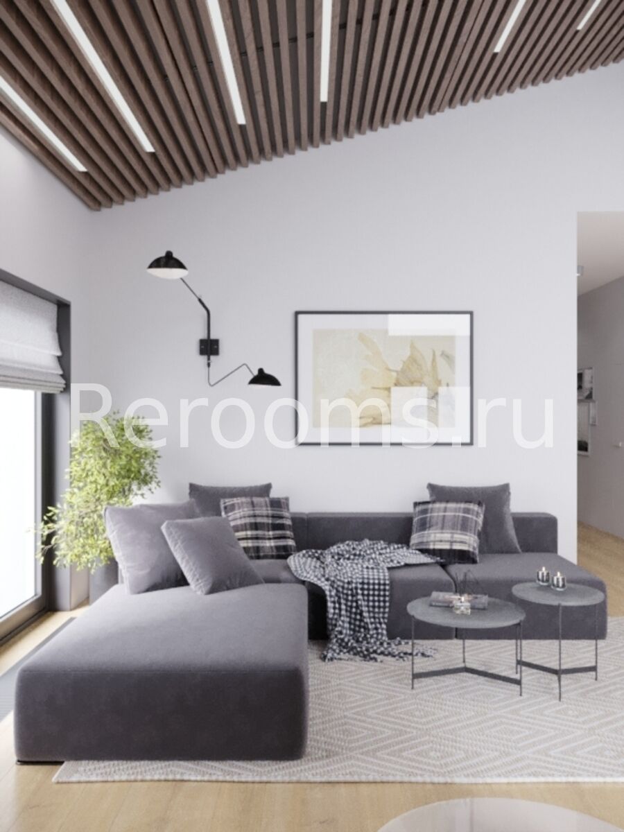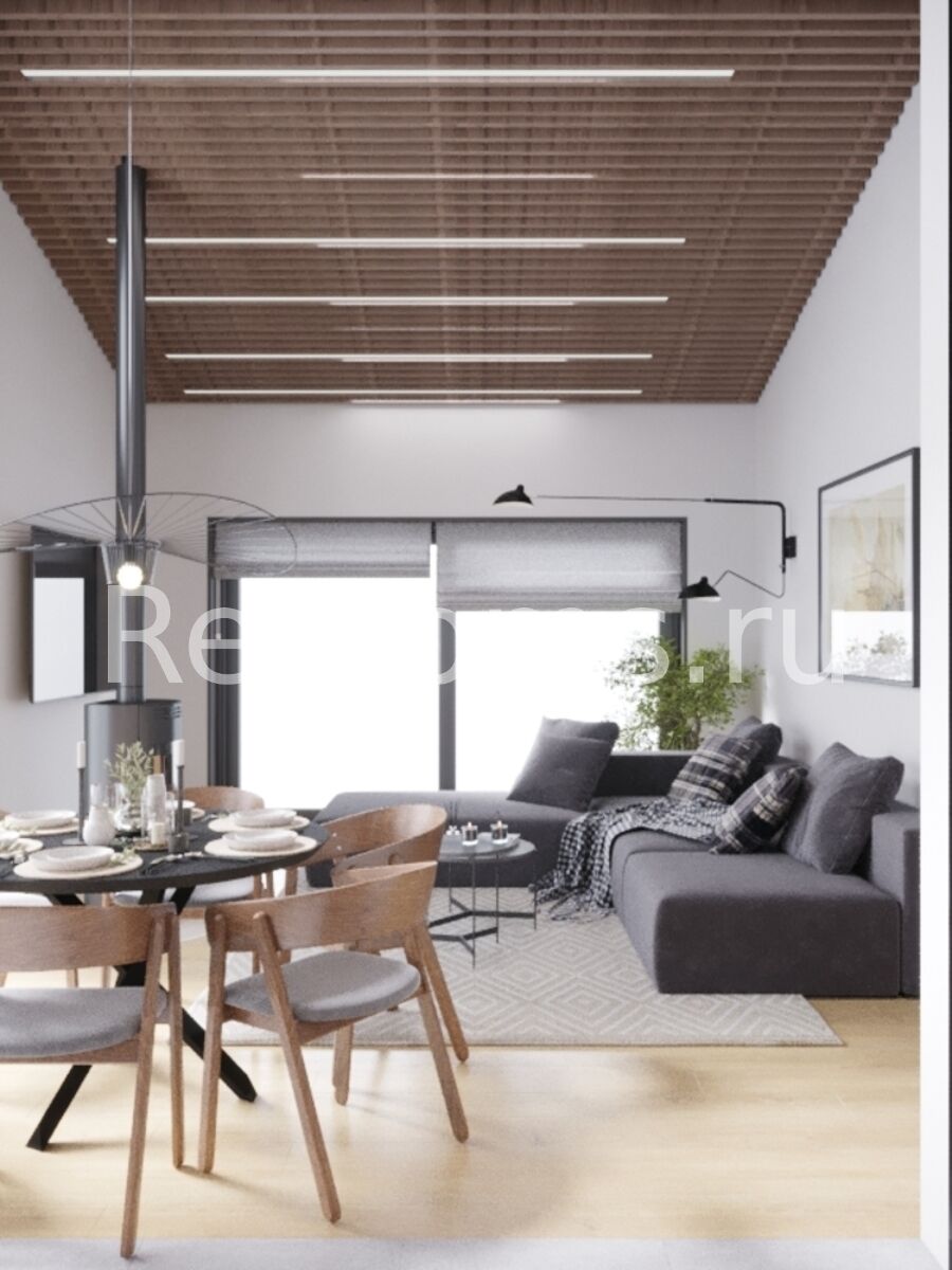 Дизайн-проект этого дома выполнен в скандинавском стиле. Несмотря на простоту и лаконичность сканди-стилистики, интерьер отличается необычайной изысканностью. В качестве основных выбраны классические для скандинавского дизайна белый, серый и древесный цвета, разбавленные более яркими акцентами. Наличие натуральных материалов в отделке и оформлении создает в помещении особую атмосферу тепла и уюта.