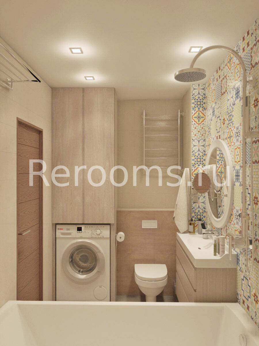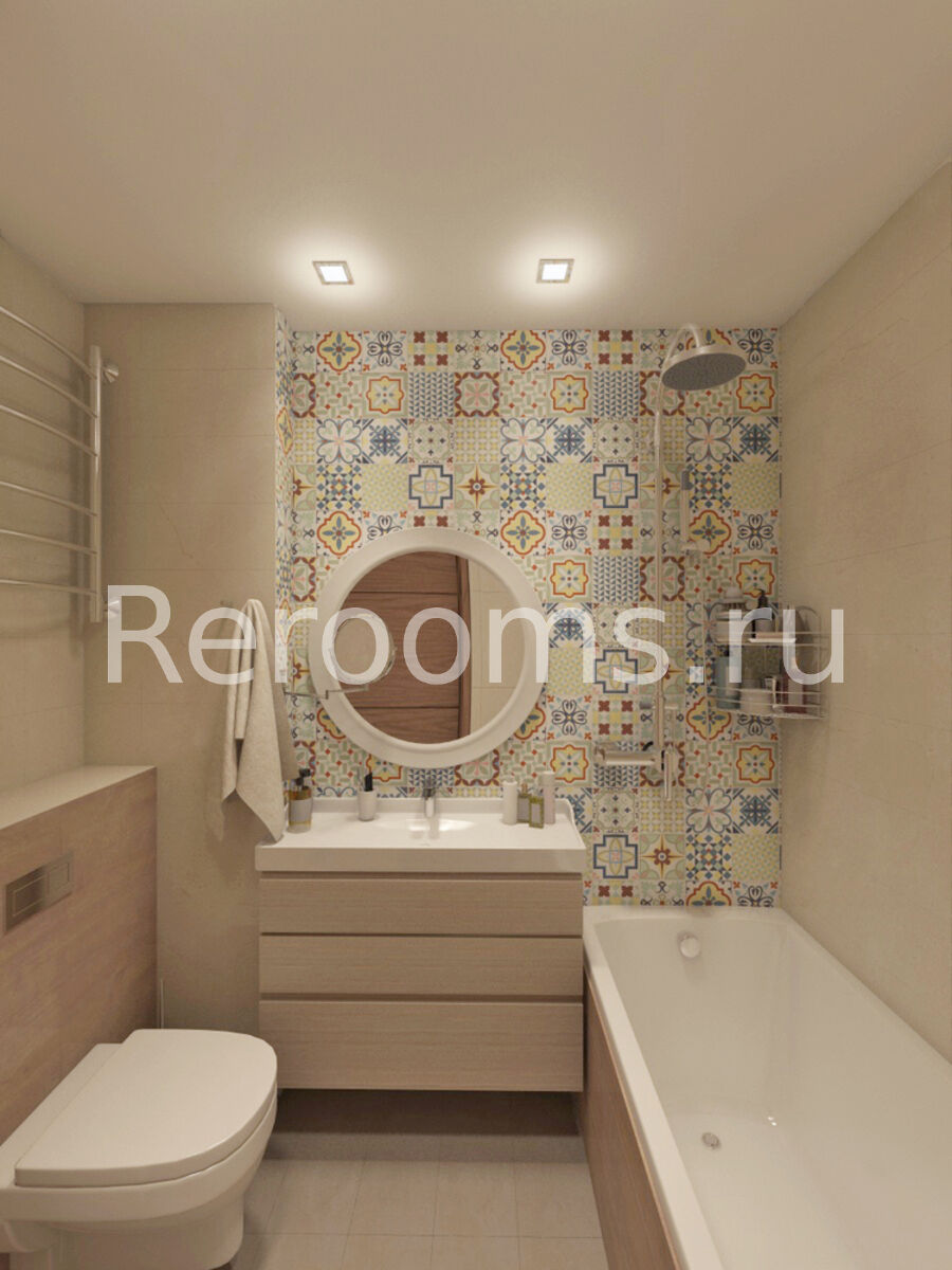 Чем эклектичнее интерьер, тем он интереснее. Удачный микс текстур, цветов и отделочных материалов придает помещению индивидуальный характер. В центре внимания - плитка с ярким принтом. Она прекрасно сочетается с деревянными фасадами мебели и привносит в пространство нотки оригинальности.
