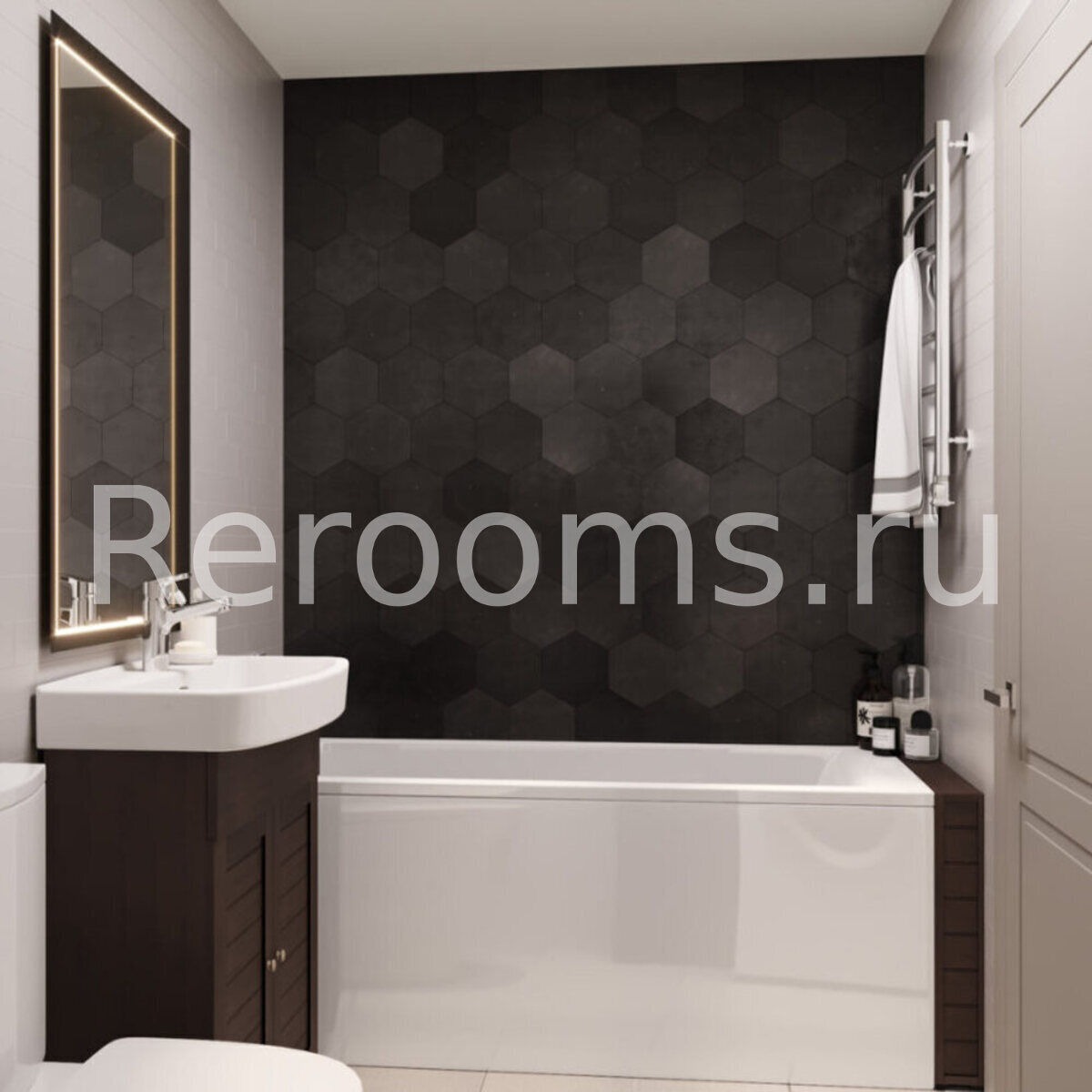 Для нашего проекта мы взяли ванную комнату, которая вмещает в себя ванну и туалет. Поскольку дизайн совмещенного санузла несет не только функциональную, но и эмоциональную нагрузку, к его разработке следует подойти основательно.