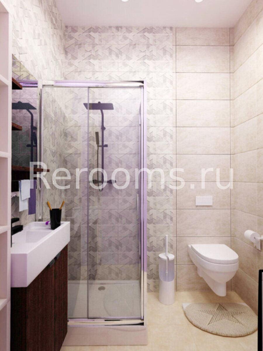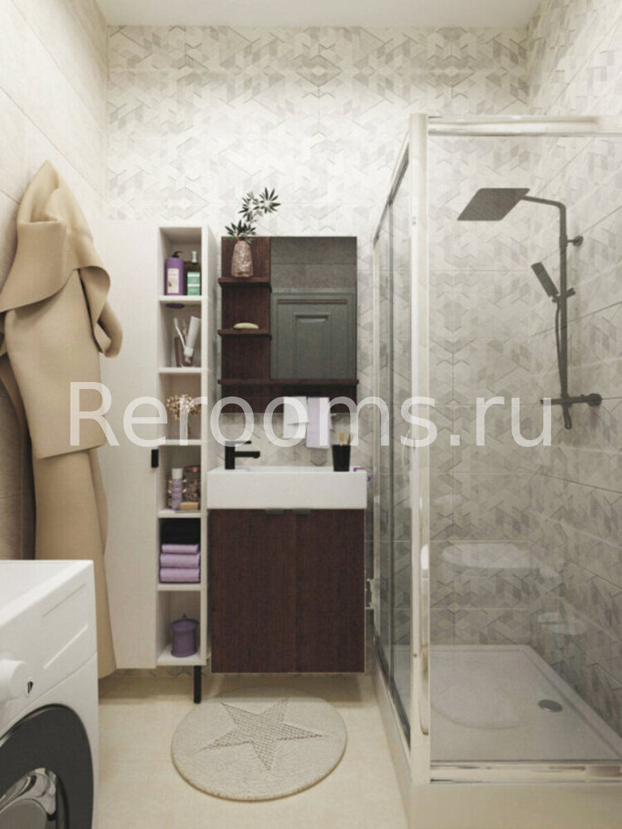Фото № 2: Дизайн-проект совмещенного санузла 3.9  м² Скандинавский стиль для ЖК Петровский Квартал