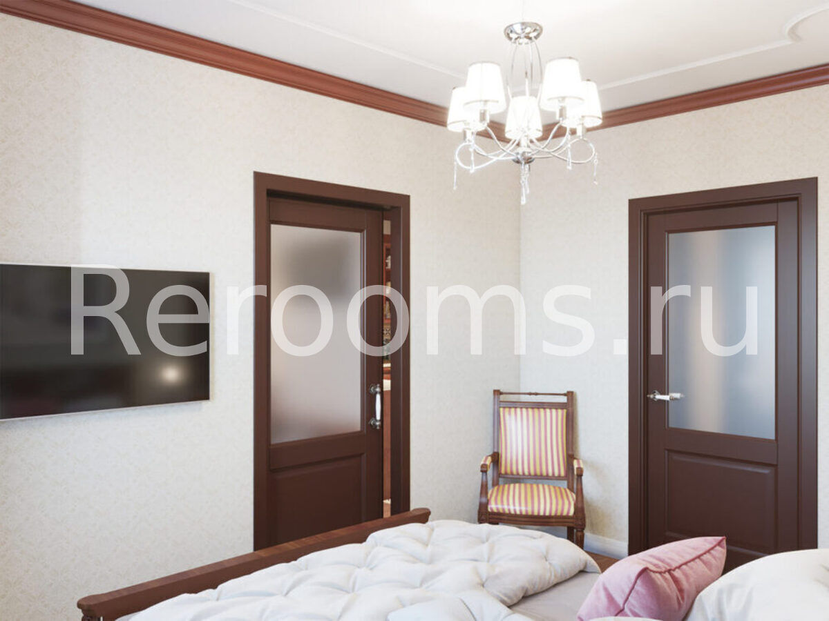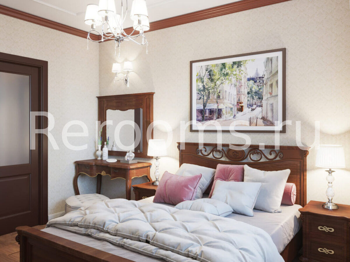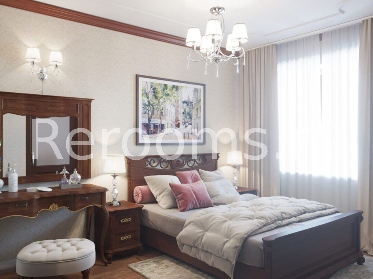 В отделке отдано предпочтение натуральным материалам. Обои и покраска спокойных оттенков, а цветовые акценты - картины. Ненавязчиво и мягко интерьер дополняет лепной декор. Элегантная мебель в классическом стиле завершает созданный образ. Всё удобно, продуманно и уютно.